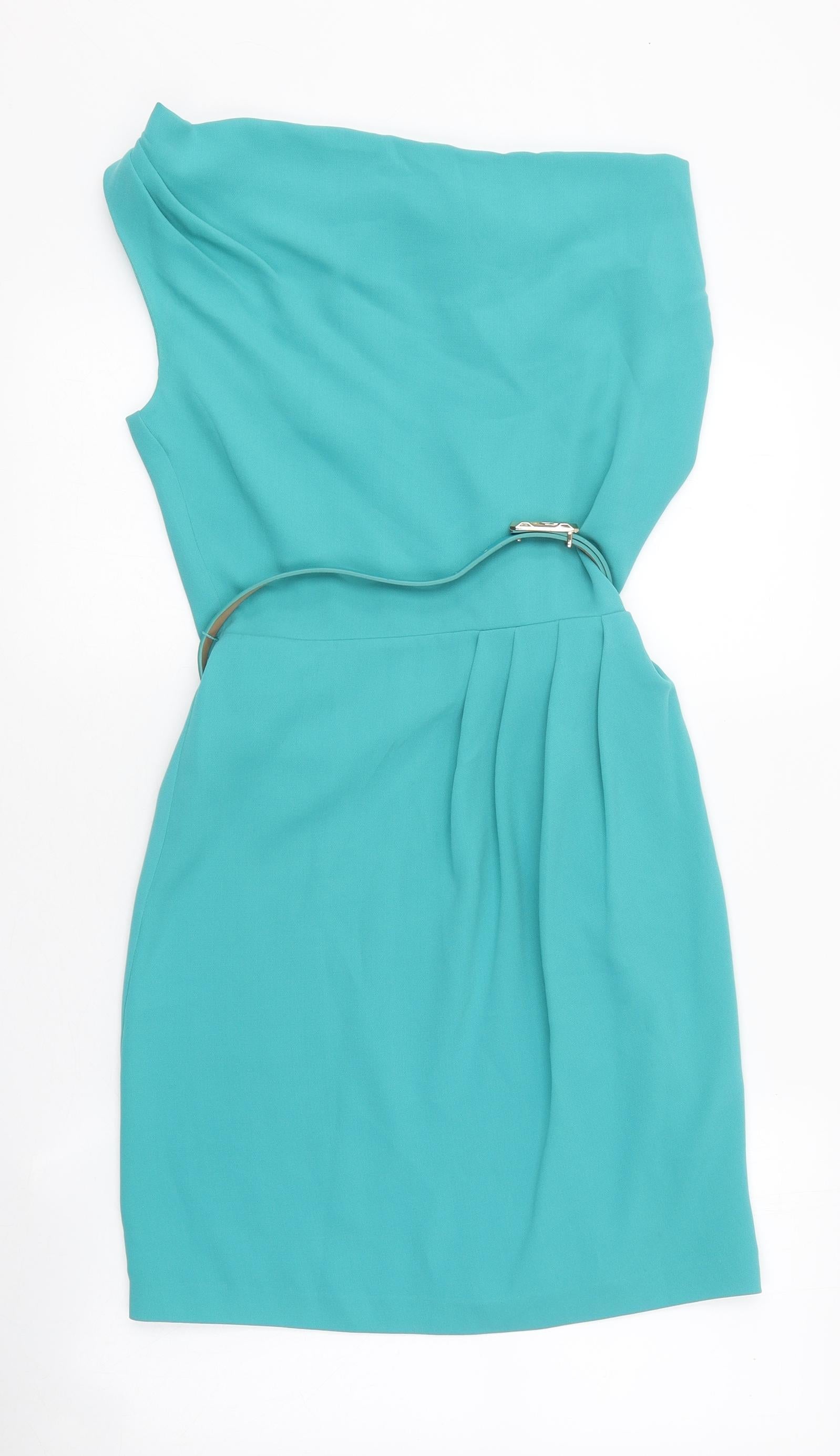 Oasis Womens Blue Viscose Mini Size 8 Off the Shoulder Pullover