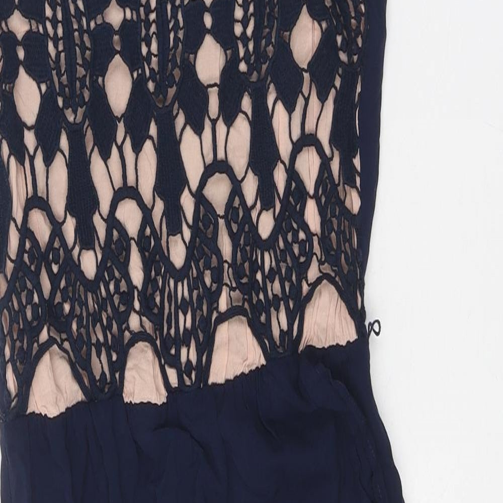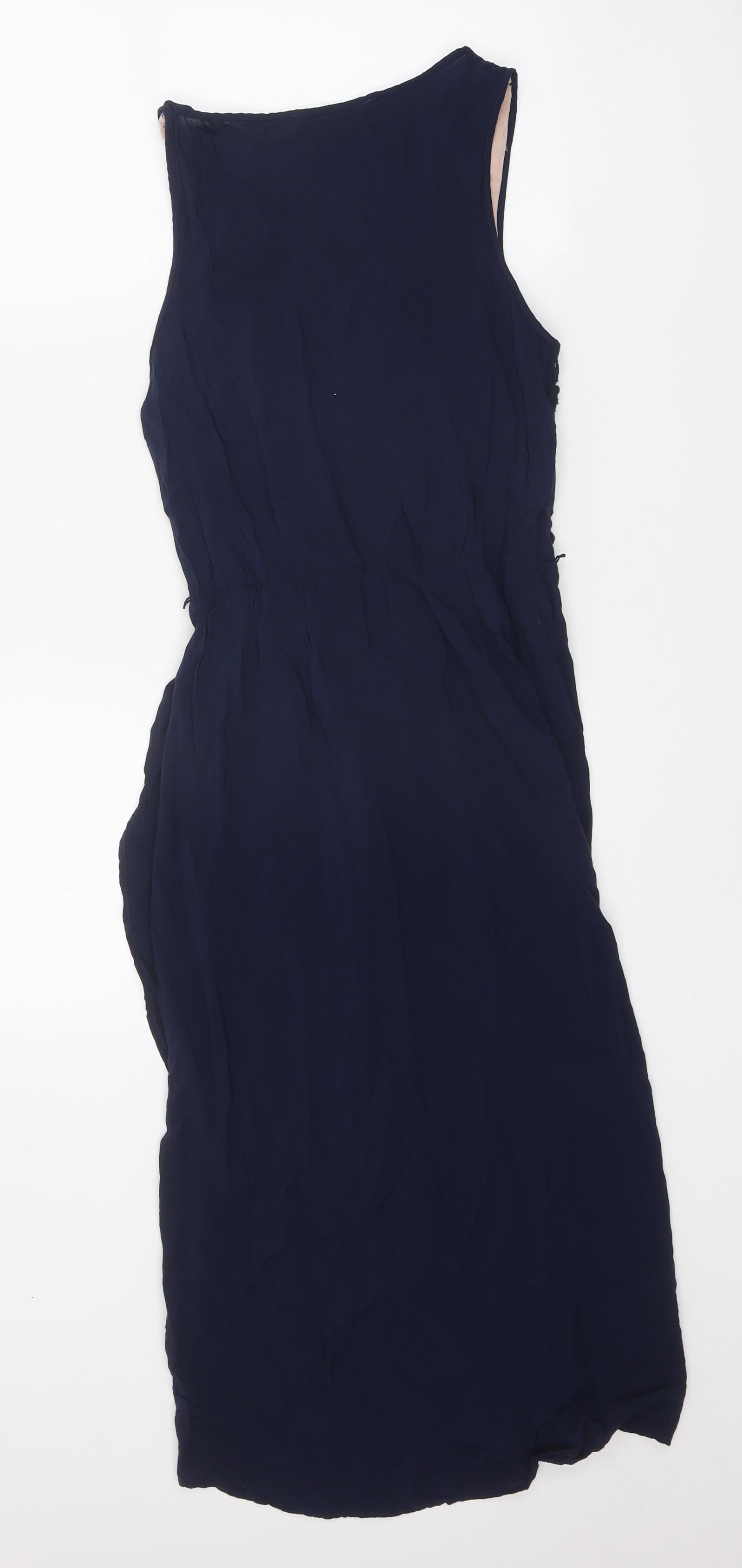 Oasis Womens Blue Viscose Pencil Dress Size 8 Round Neck