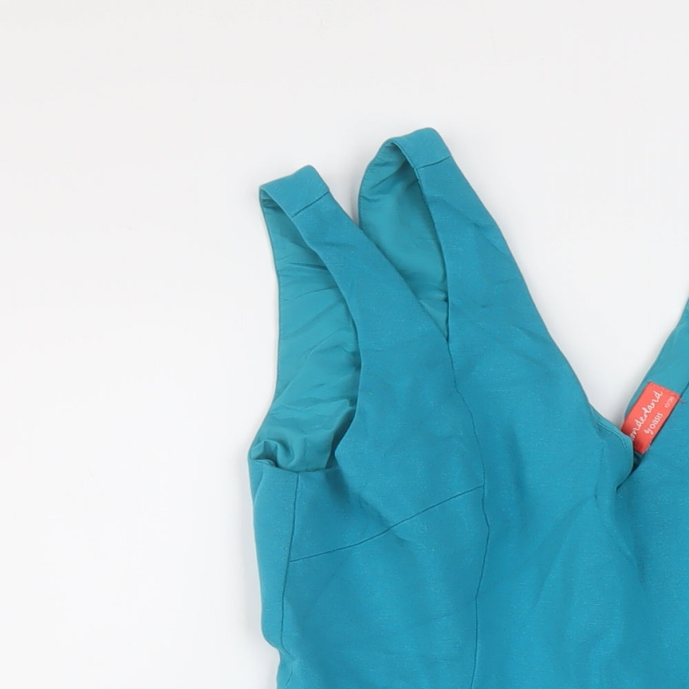 Oasis Womens Blue Viscose Skater Dress Size 10 V-Neck Zip