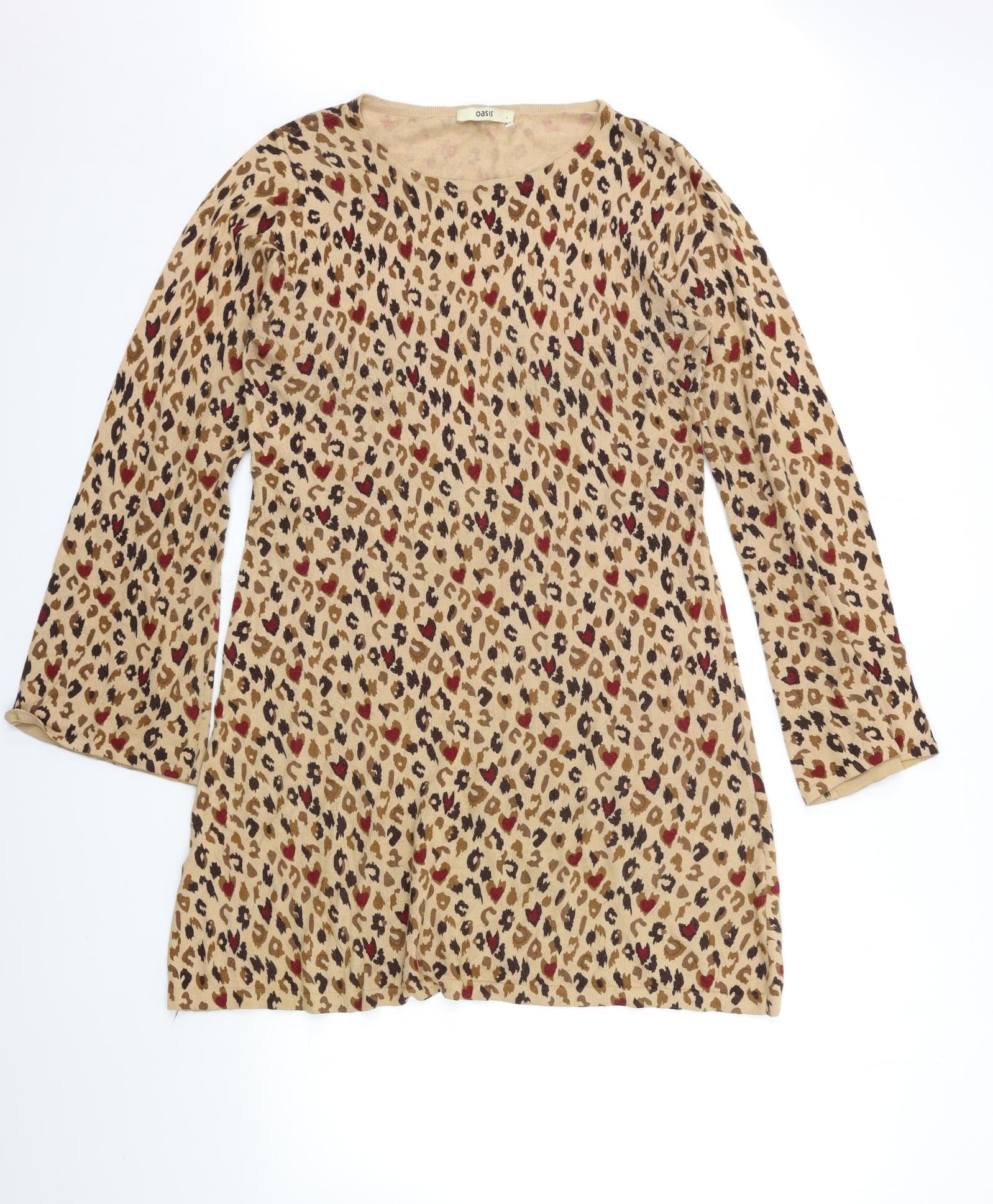 Oasis Womens Brown Animal Print Knit Jumper Dress Size L