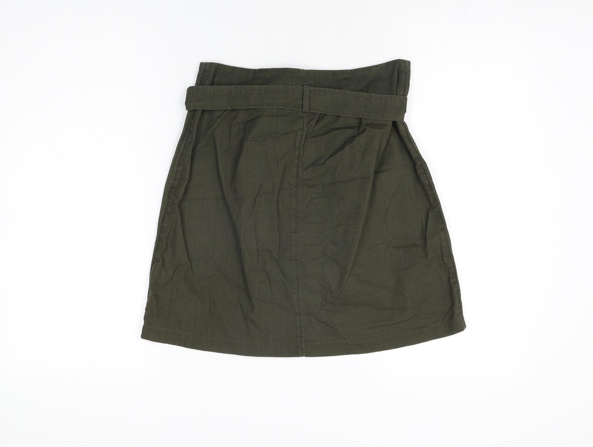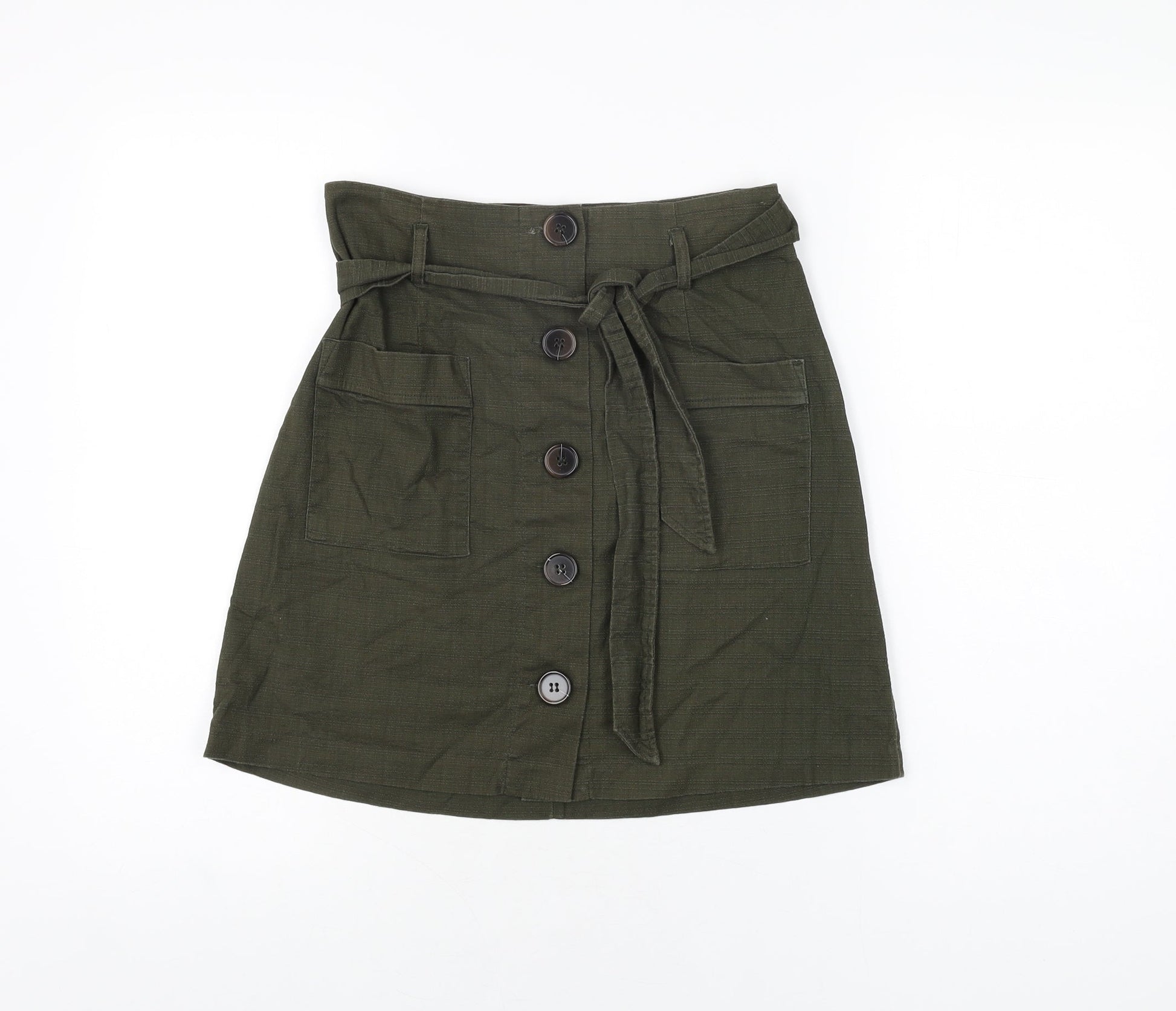Oasis Womens Green Cotton Mini Skirt Size 8 Button