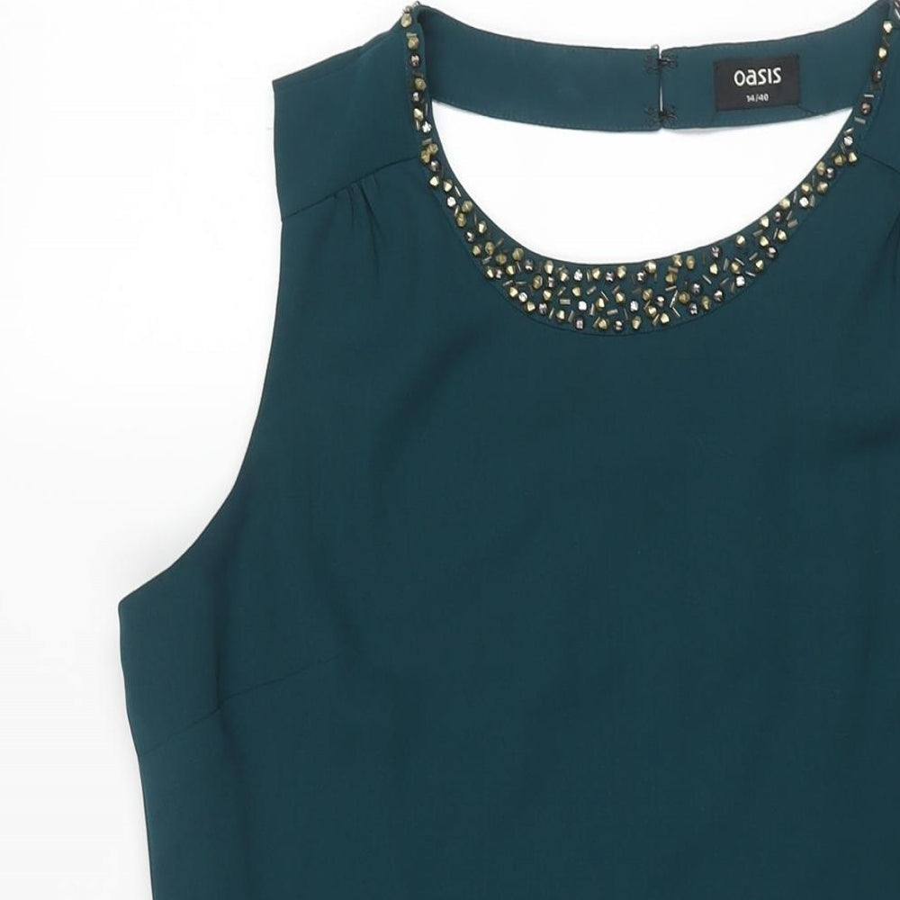 Oasis Womens Green Polyester Fit & Flare Size 14 Round Neck Zip - Open Back Detail Beading