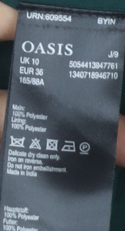 Oasis Women's Green Sleeveless Shift Dress, Size 10