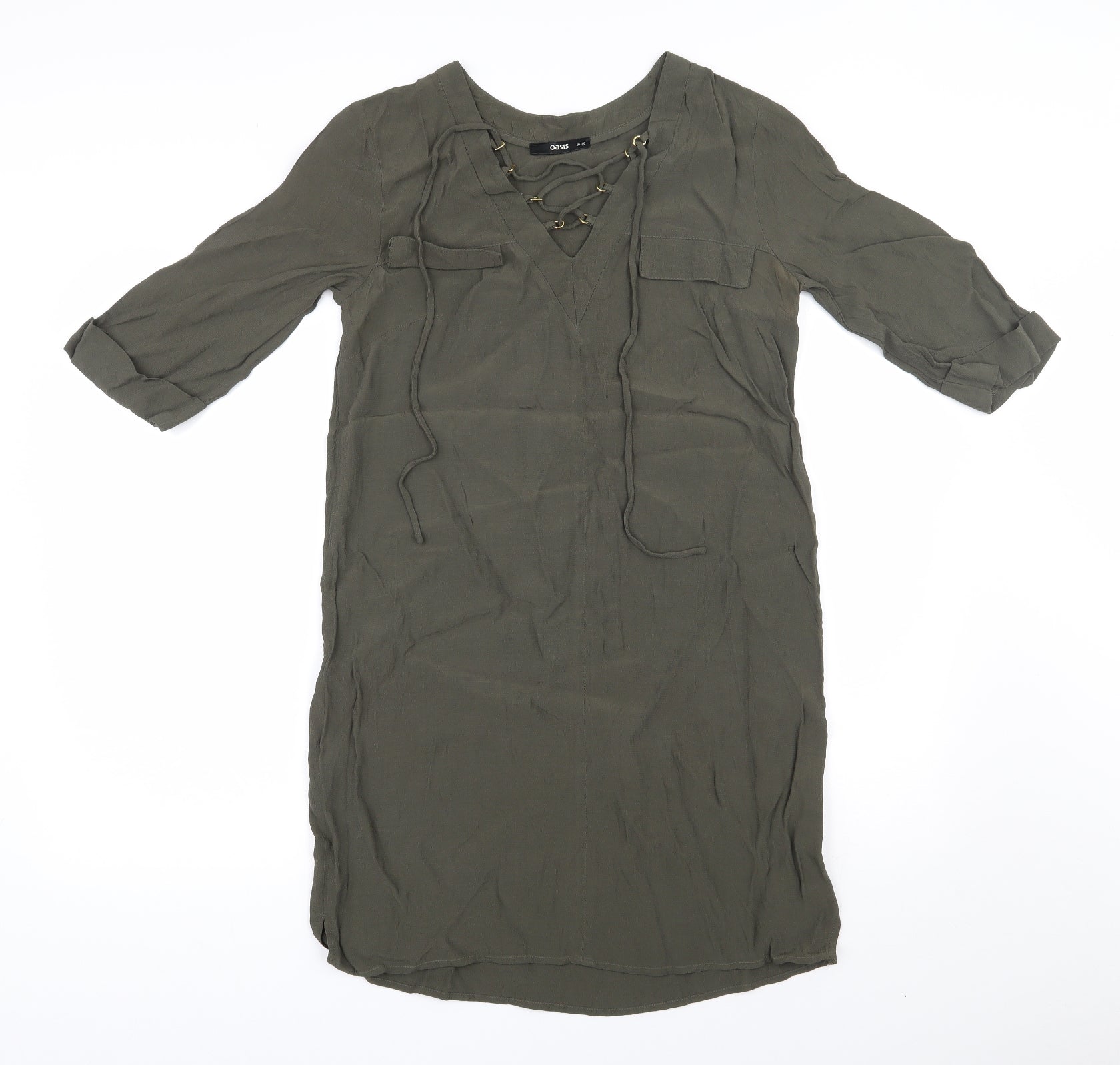 Oasis Womens Green Viscose Shift Size 10 V-Neck Pullover
