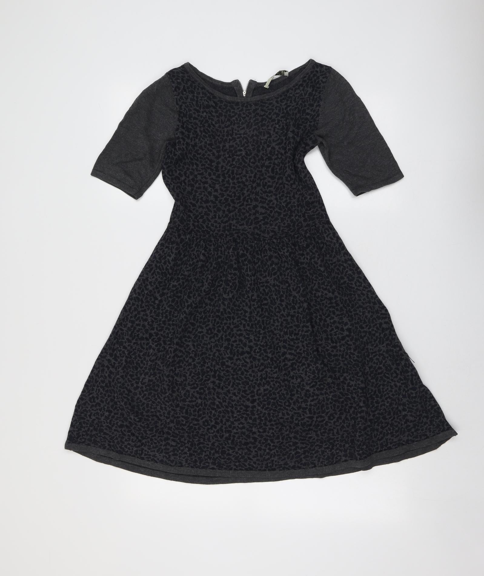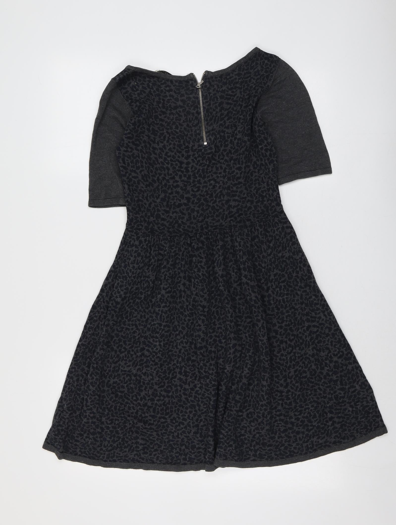 Oasis Womens Grey Animal Print Cotton Trapeze & Swing Size XS Round Neck Zip - Leopard Pattern