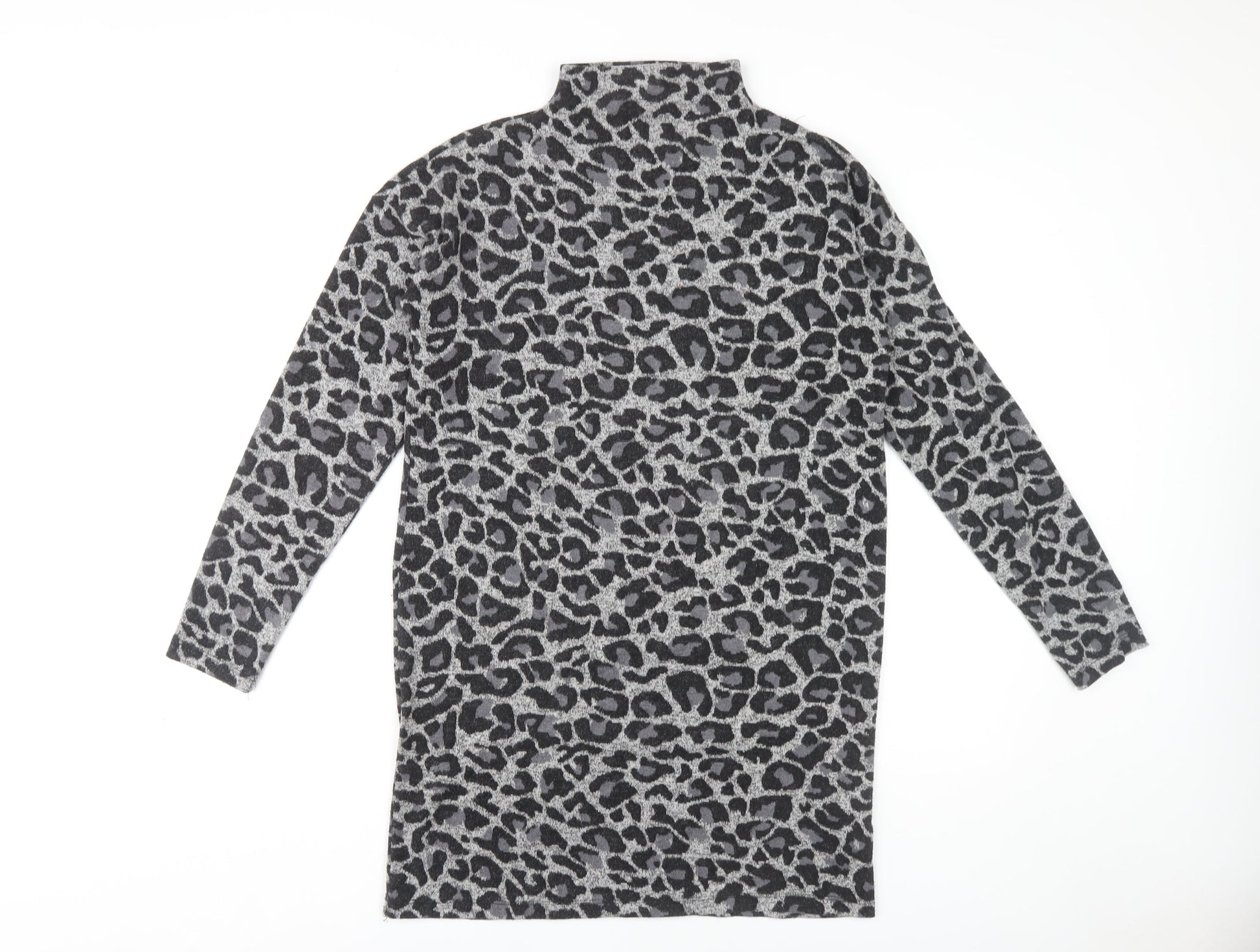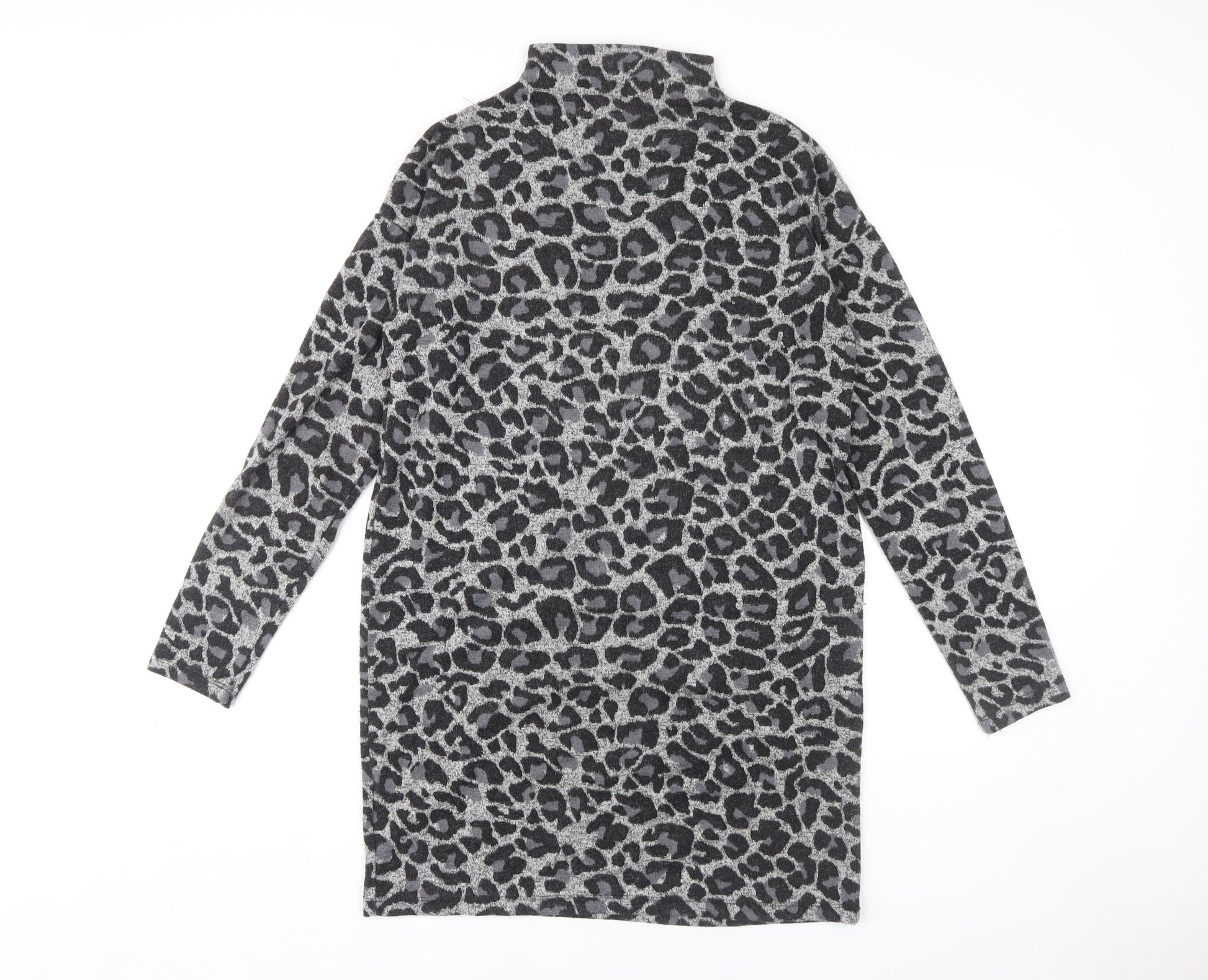 Oasis Women's Grey Animal Print High Neck Shift Dress M