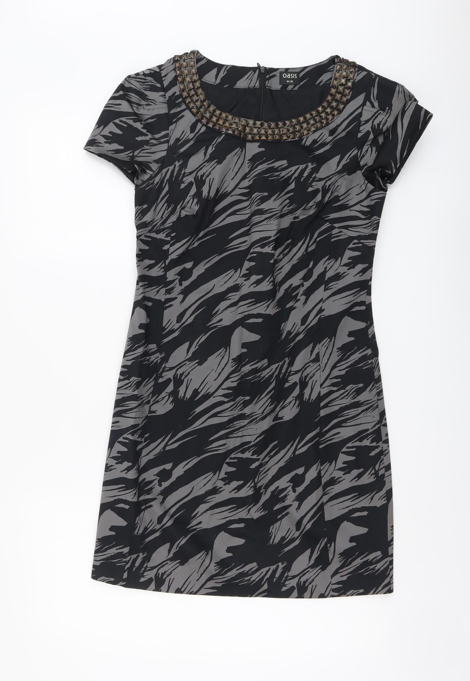 Oasis Womens Grey Geometric Cotton A-Line Size 10 Round Neck Zip