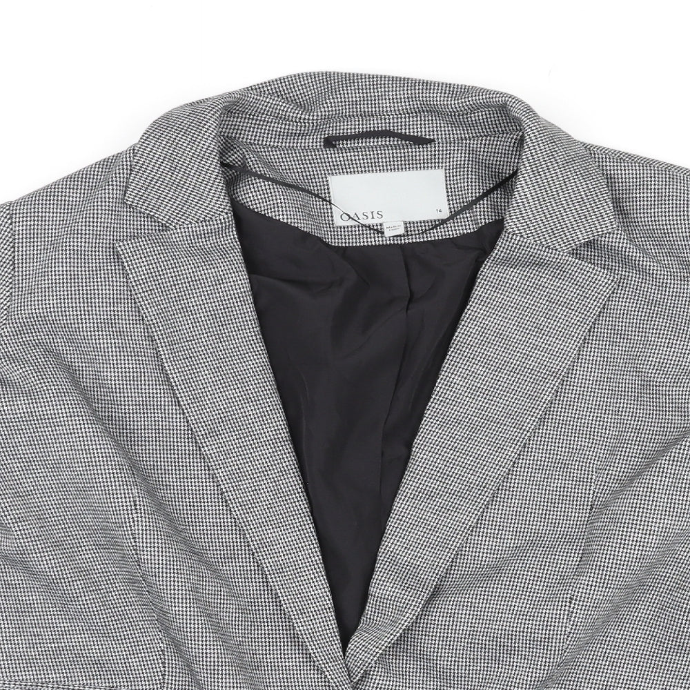 Oasis Womens Grey Plaid Polyester Jacket Blazer Size 14