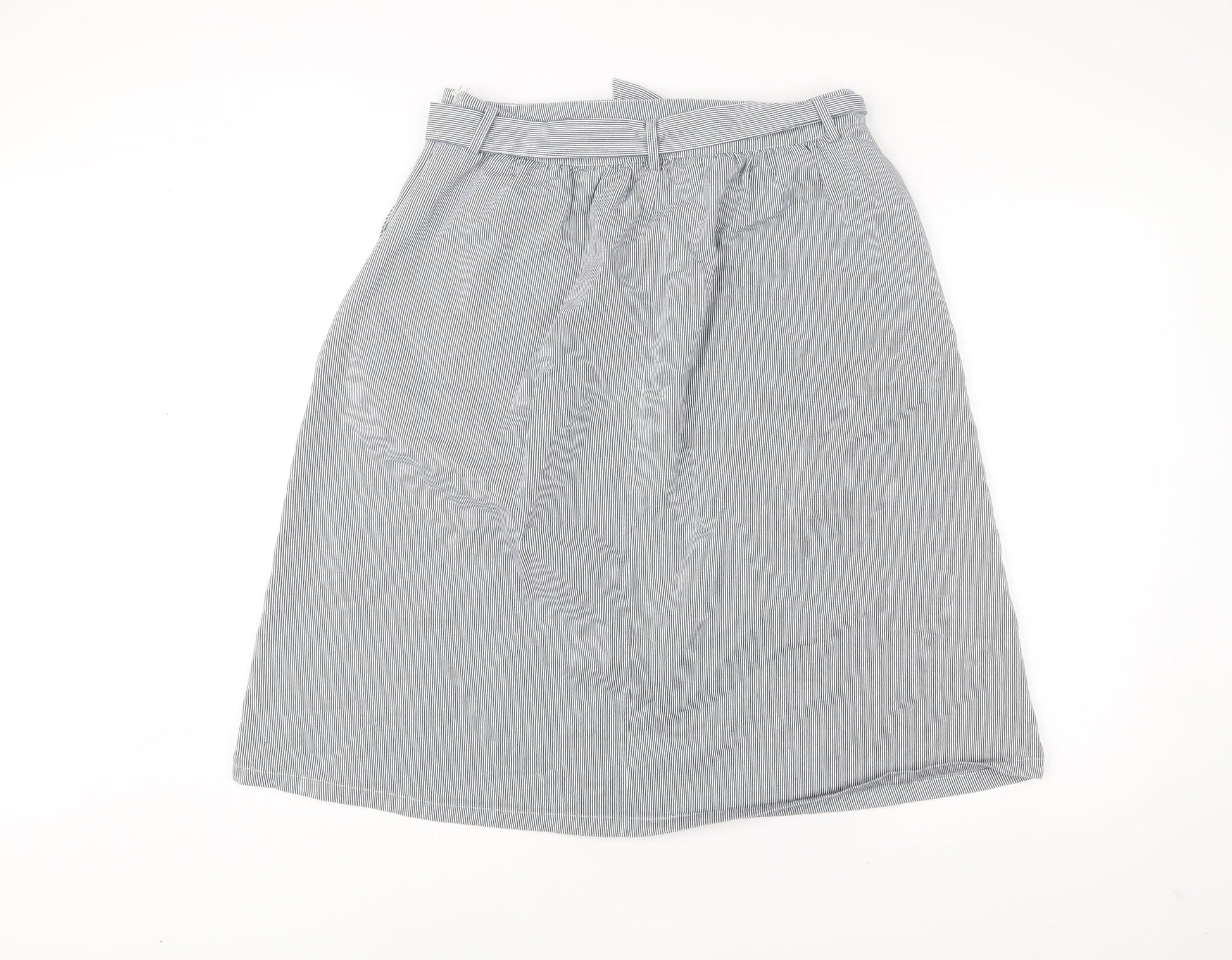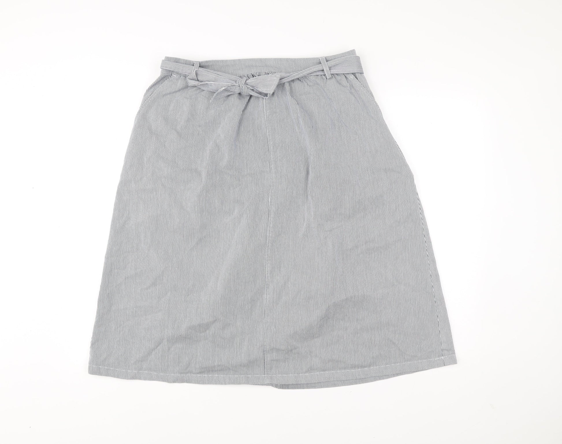 Oasis Womens Grey Striped A-Line Skirt Size 14 Knee Length Cotton Blend
