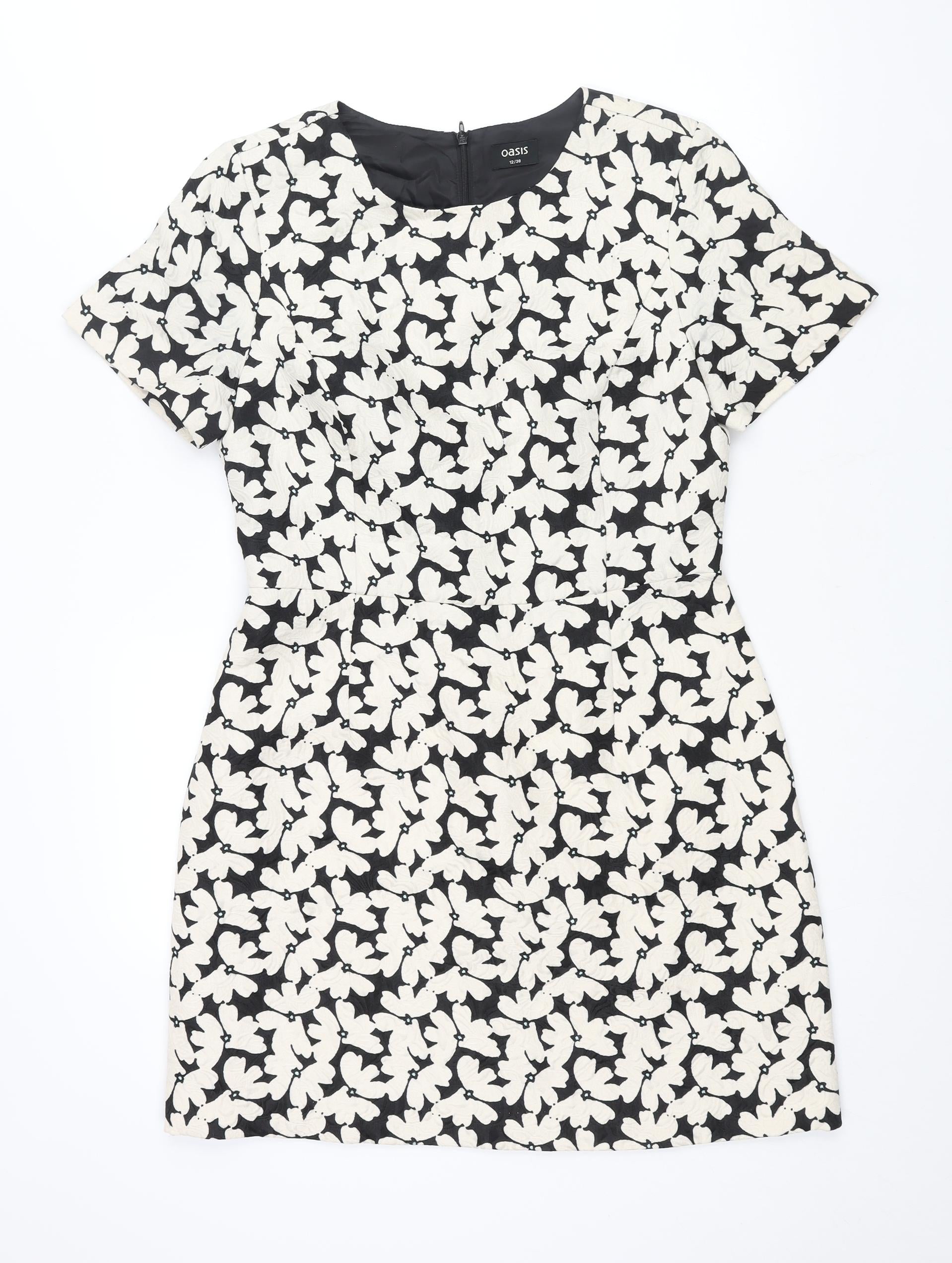Oasis Womens Ivory Floral Polyester A-Line Size 12 Round Neck Zip