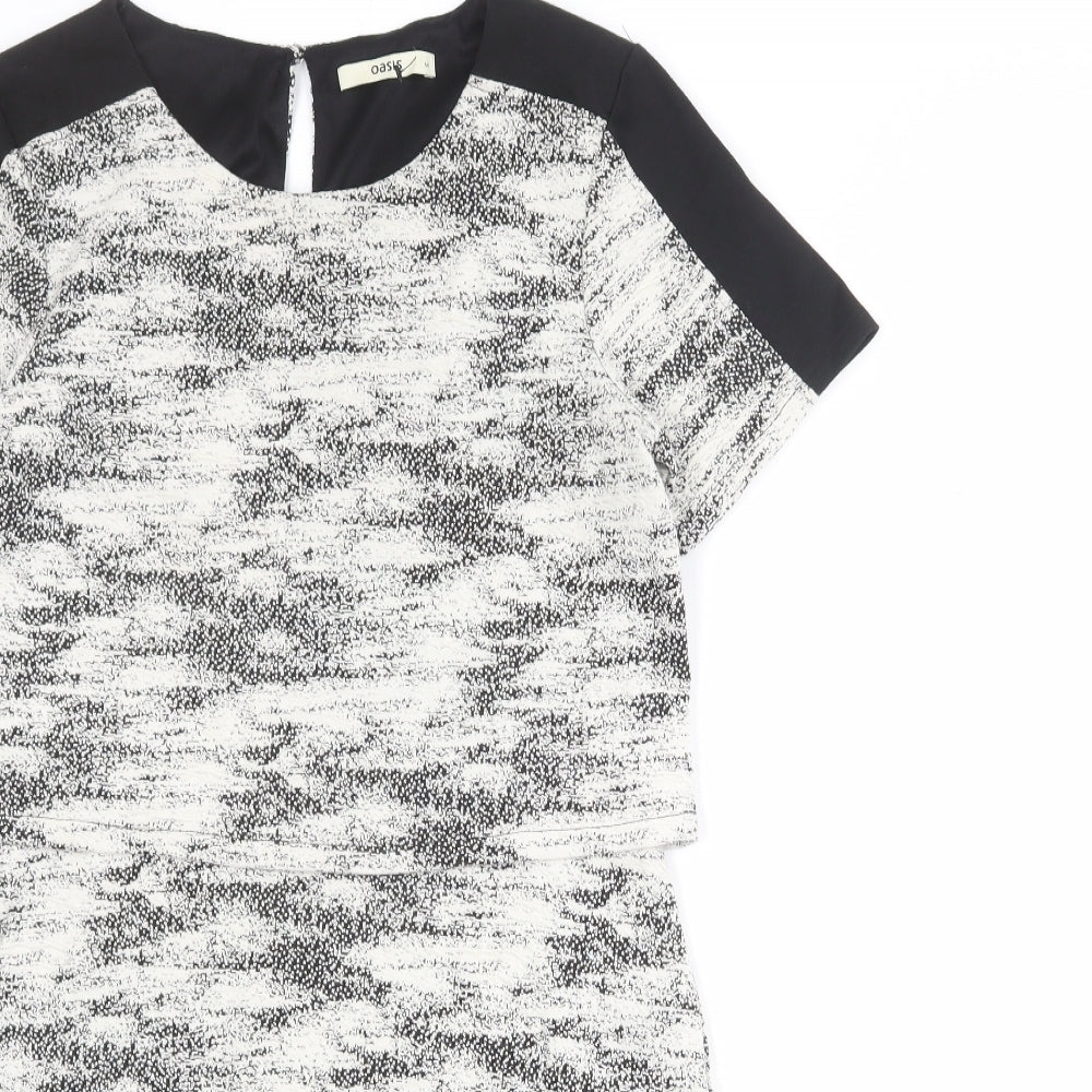 Oasis Womens Ivory Geometric Cotton Shift Size M Round Neck Pullover
