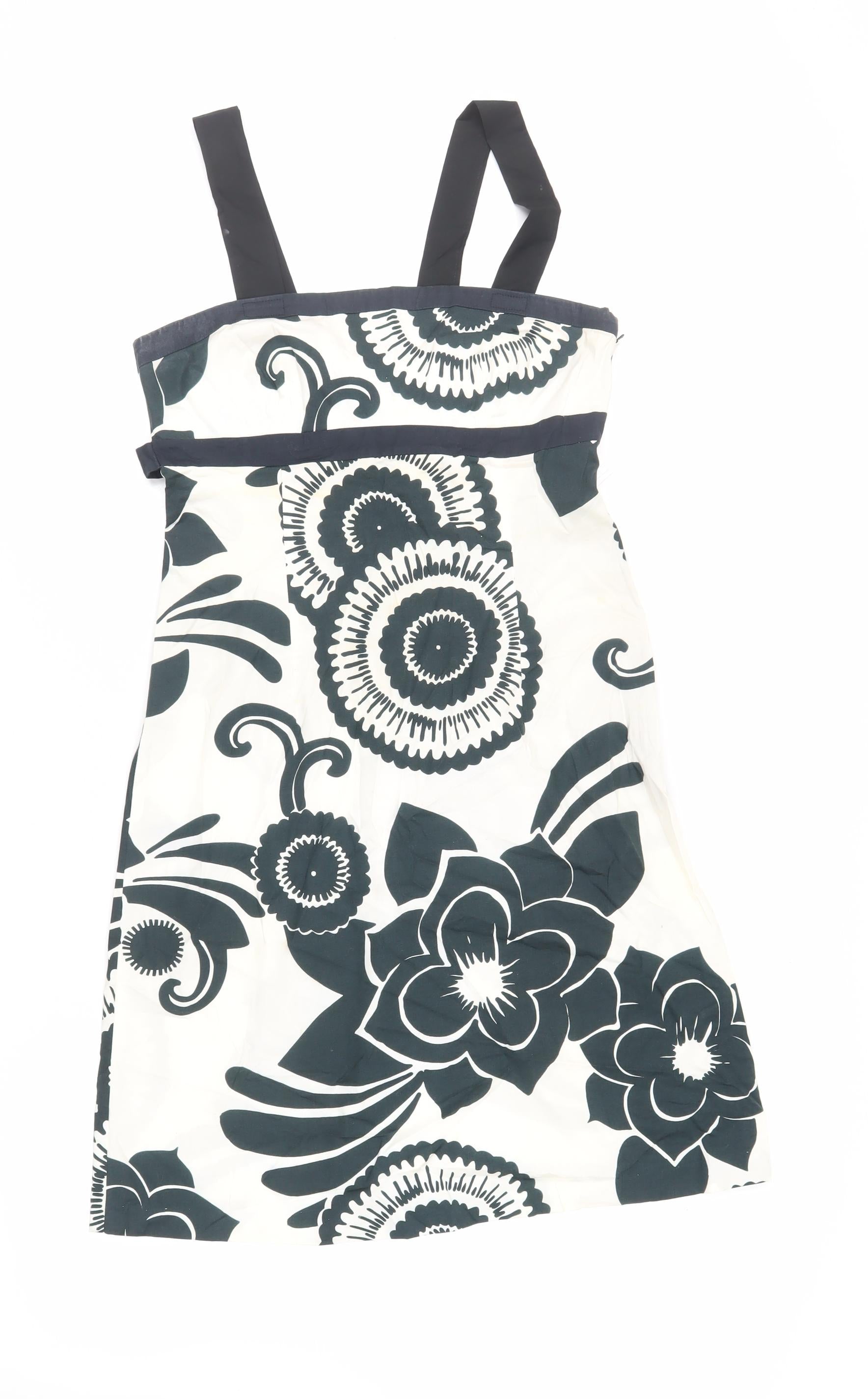 Oasis Womens Ivory Geometric Cotton Tank Dress Size 12 Square Neck Zip