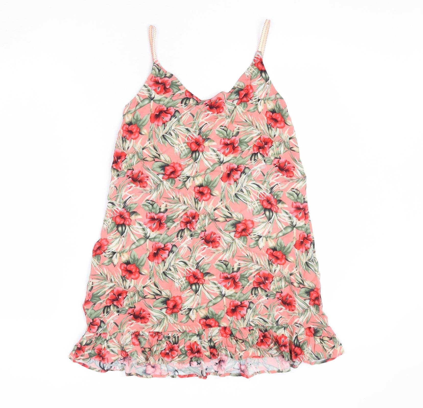 Oasis Womens Multicoloured Floral Viscose A-Line Size XS V-Neck Pullover - Hibiscus, Leaves, Flare Hem