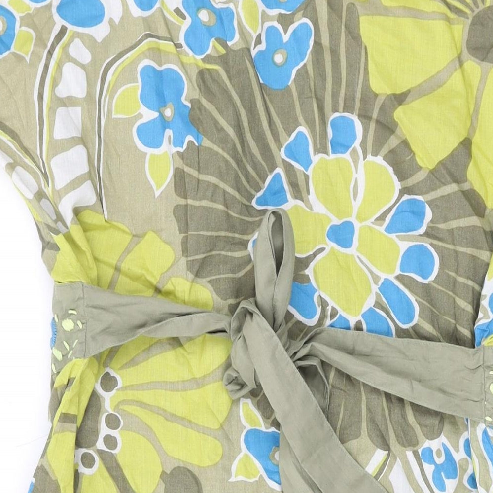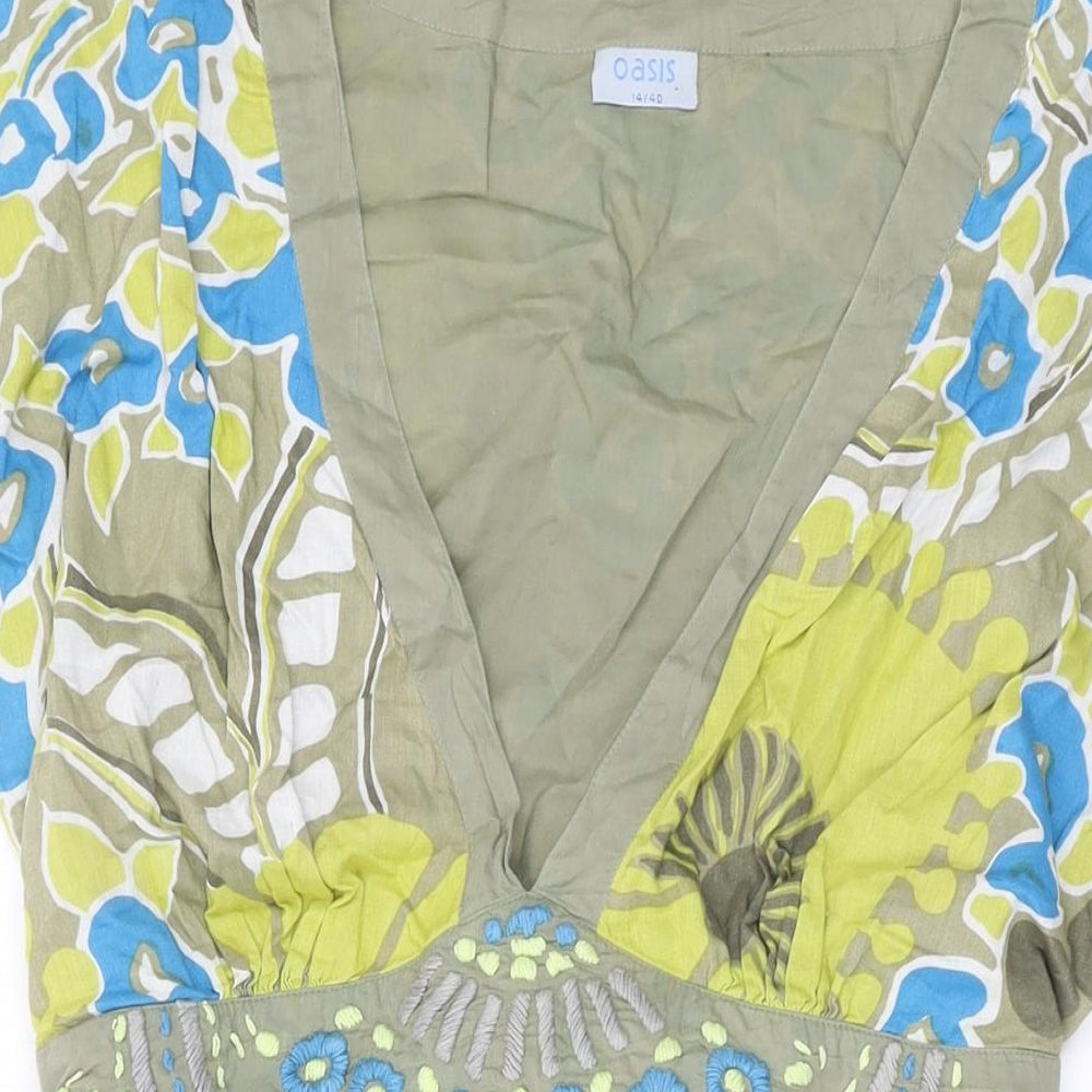 Oasis Womens Multicoloured Geometric Cotton A-Line Size 14 V-Neck Pullover