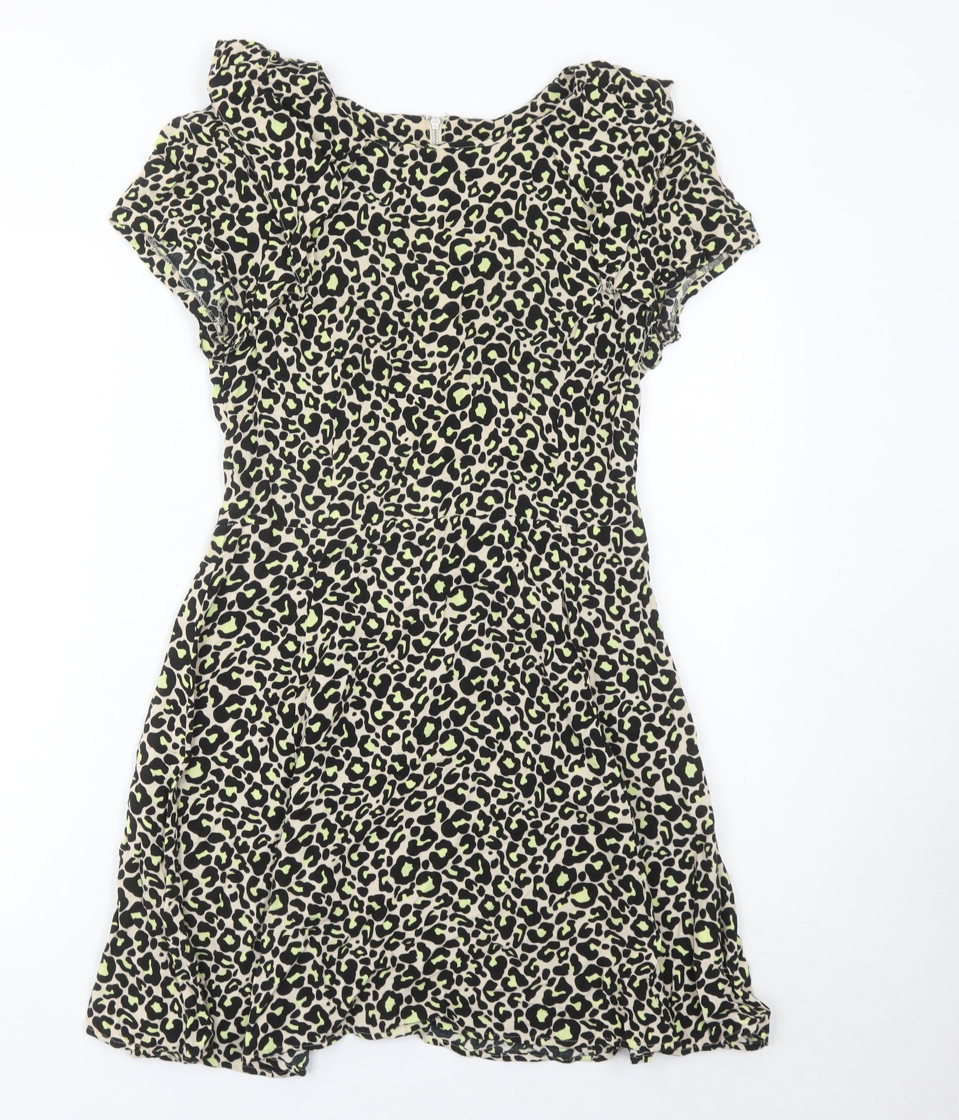 Oasis Womens Multicoloured Leopard Print A-Line Short Dress Size 10