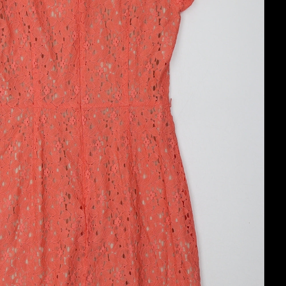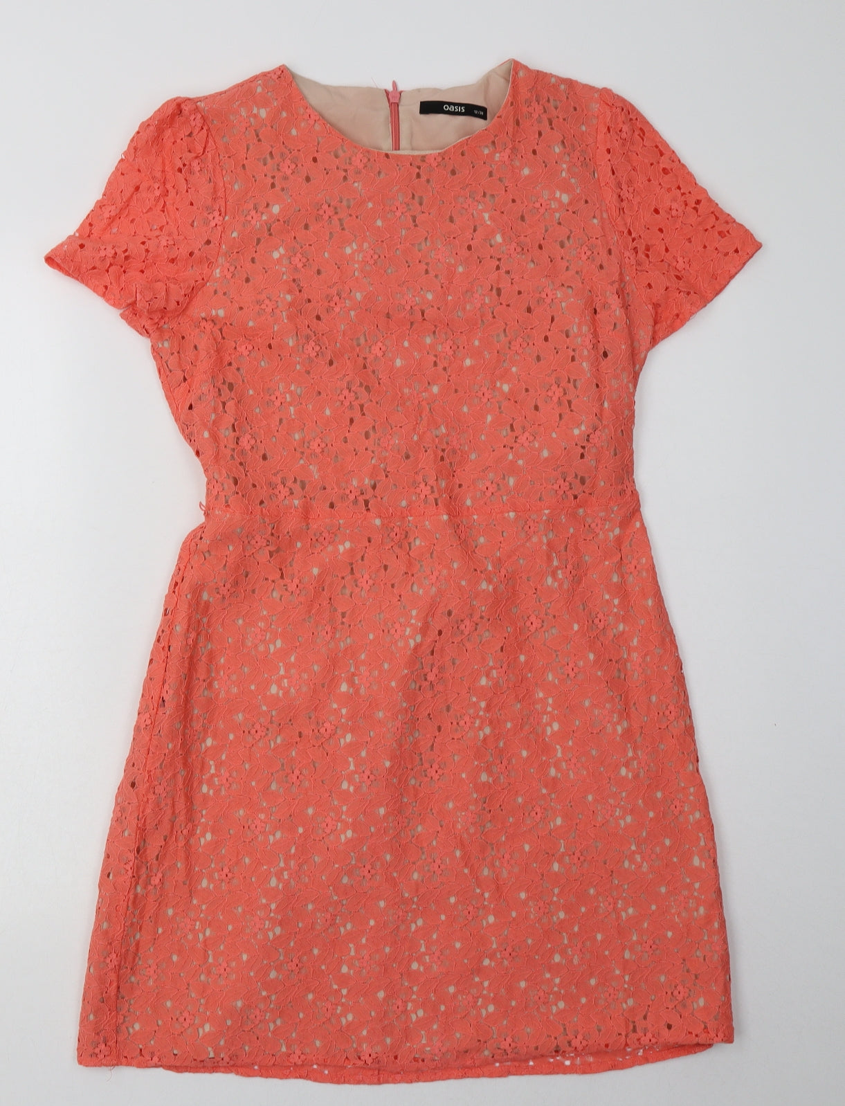 Oasis Womens Pink Floral Cotton A-Line Size 12 Crew Neck Zip