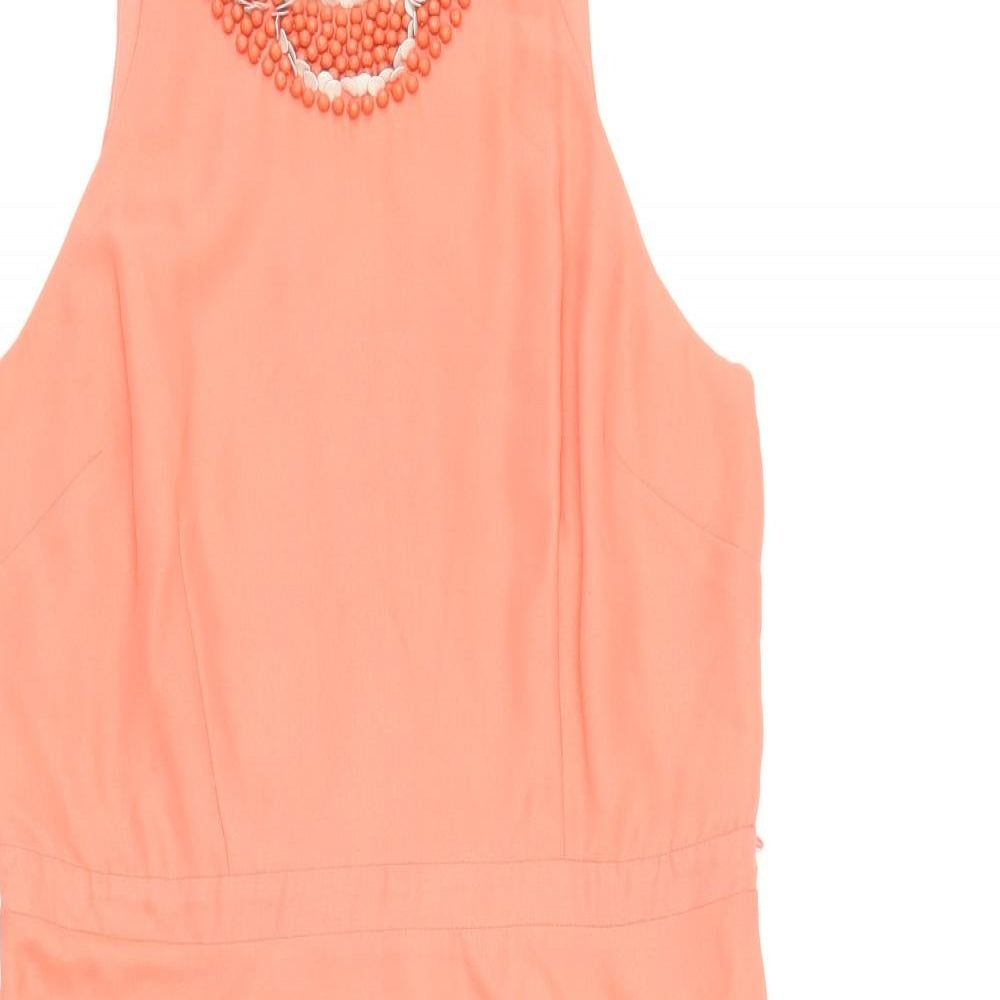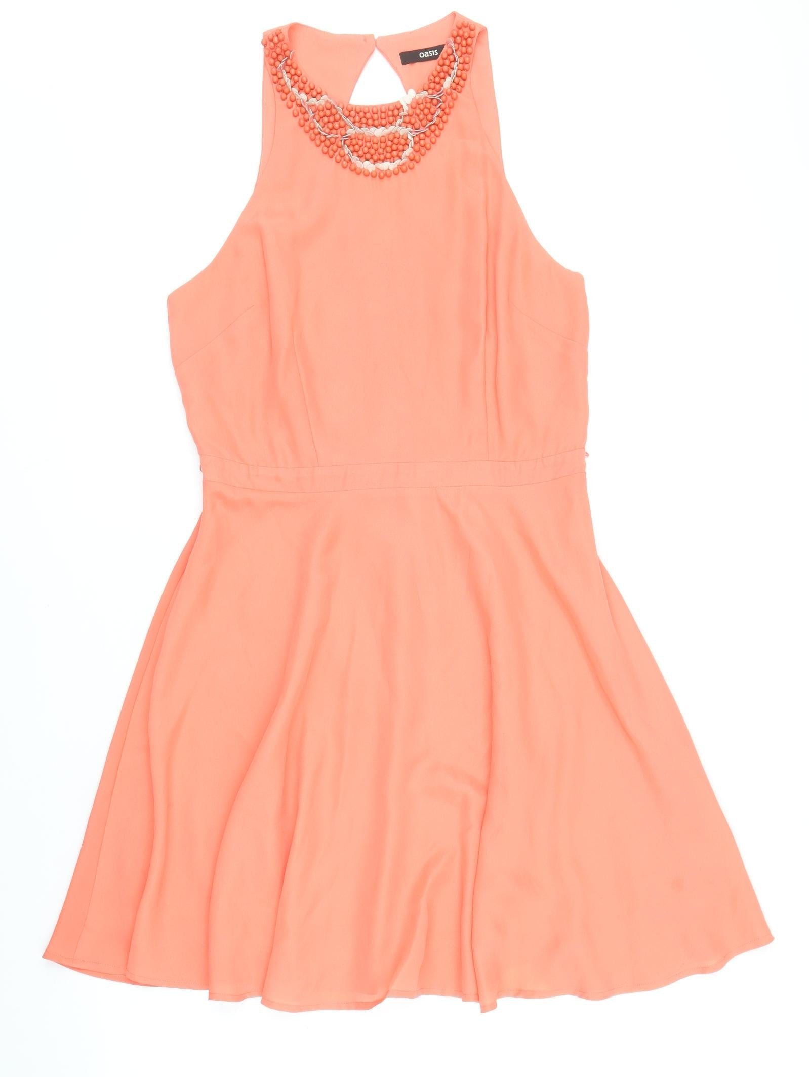 Oasis Womens Pink Polyester Fit & Flare Size 10 Round Neck Button