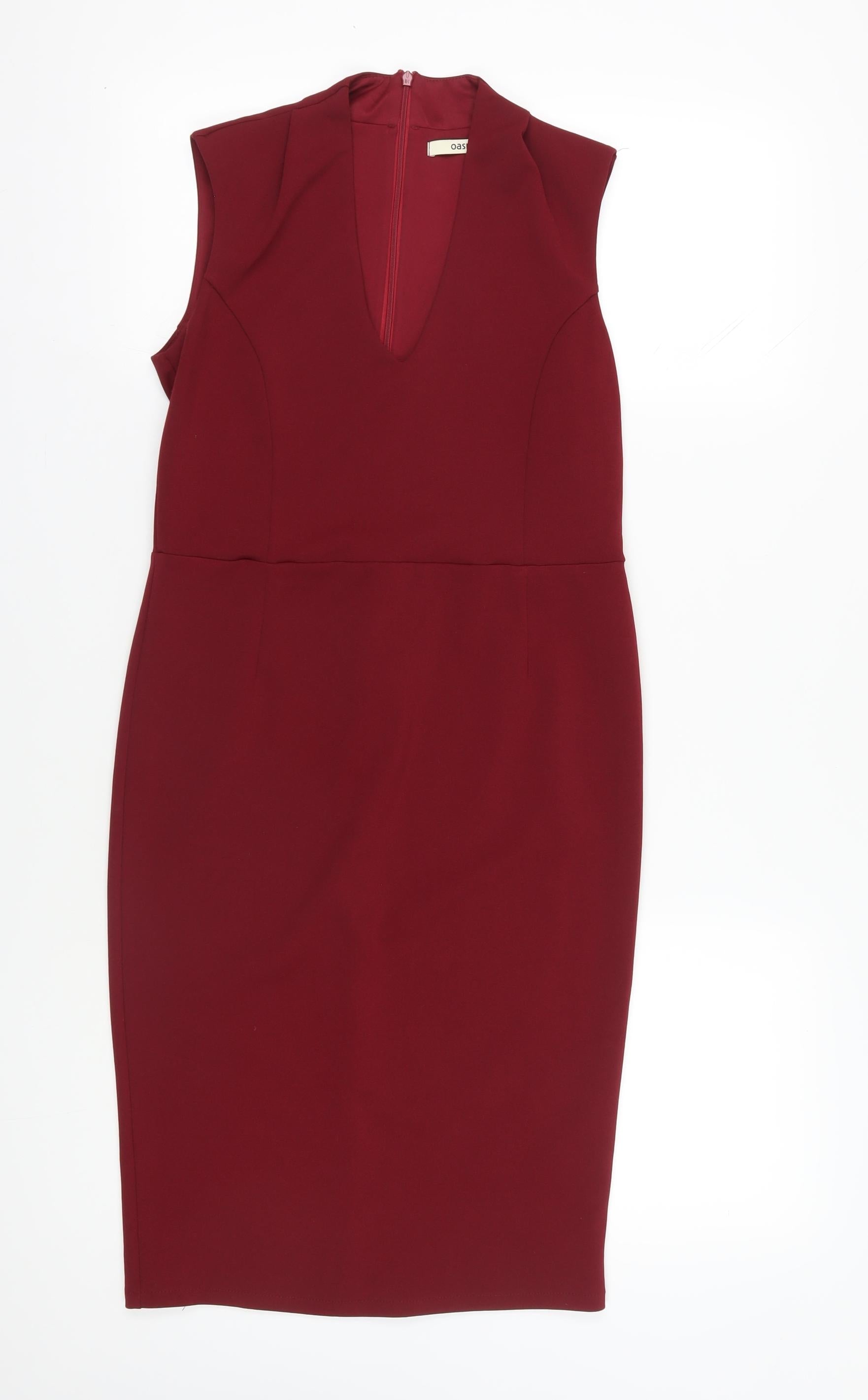 Oasis Women's Red Bodycon Dress - Size M, V-Neck