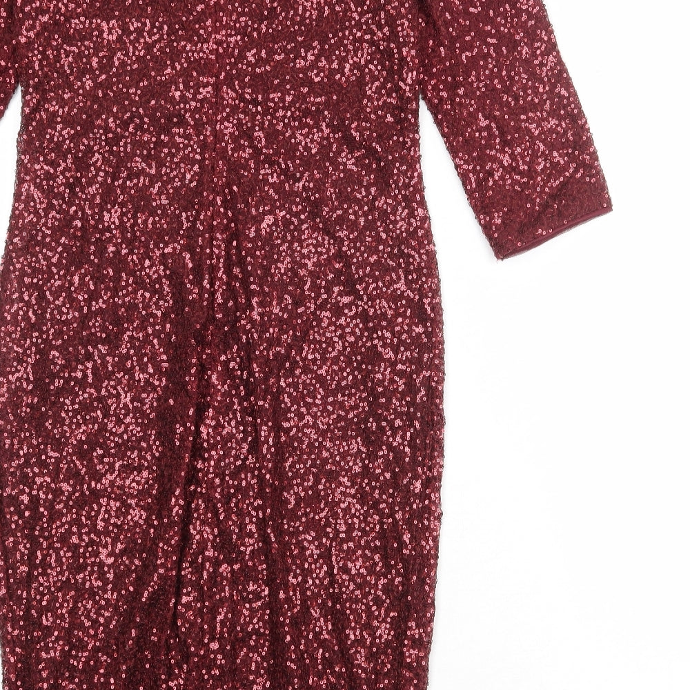 Oasis Womens Red Polyester A-Line Size M Round Neck Zip