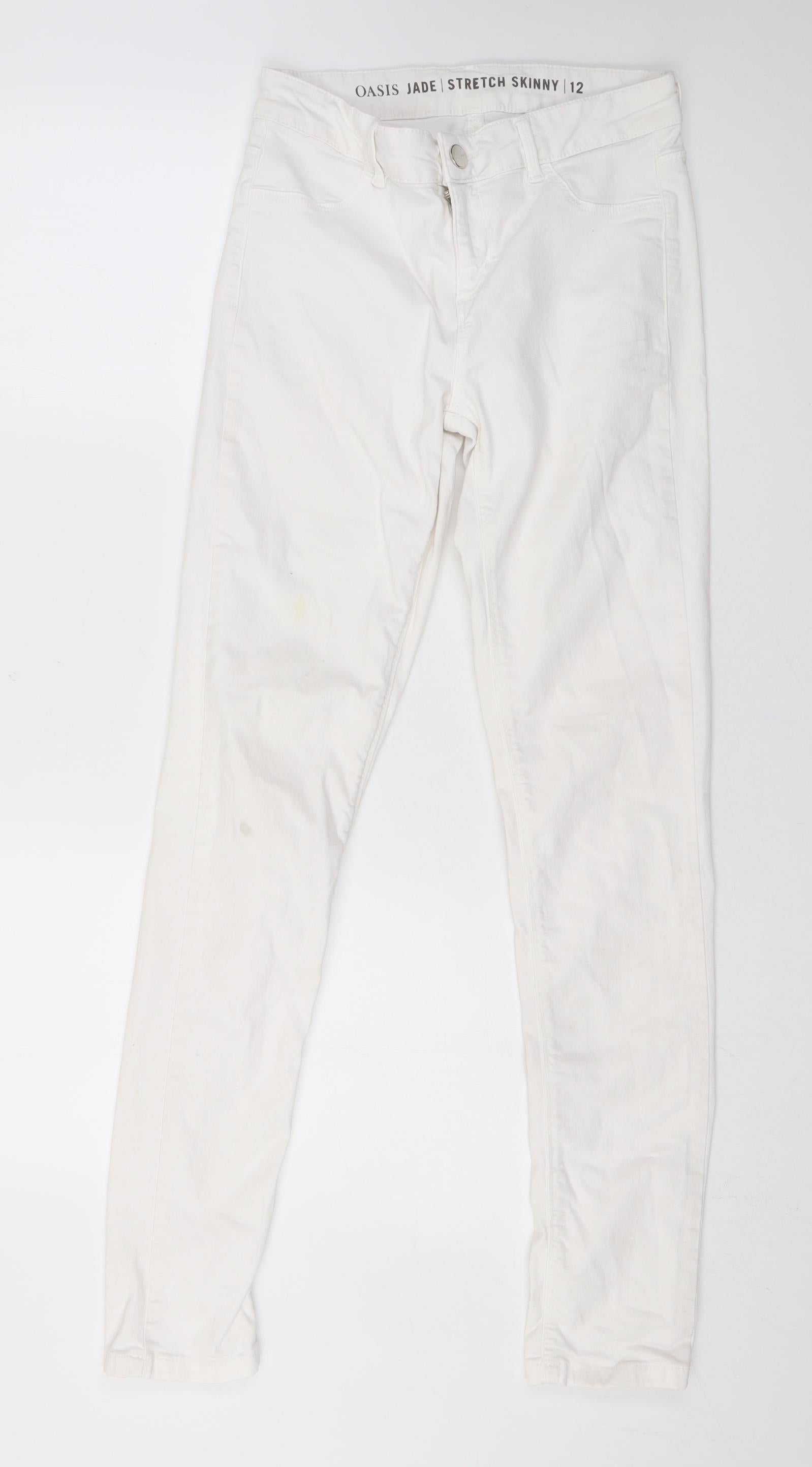 Oasis Womens White Cotton Skinny Jeans Size 12 L28 in Regular Zip