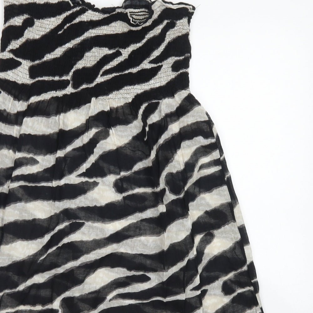 Ocean Club Womens Black Animal Print Cotton Fit & Flare Size 10 Off the Shoulder - Bandeau