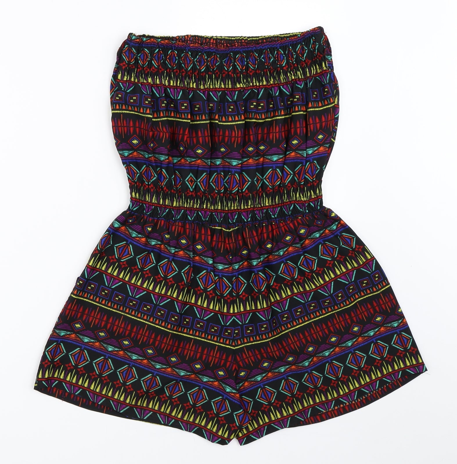 Ocean Club Womens Black Geometric Playsuit One-Piece Size 8