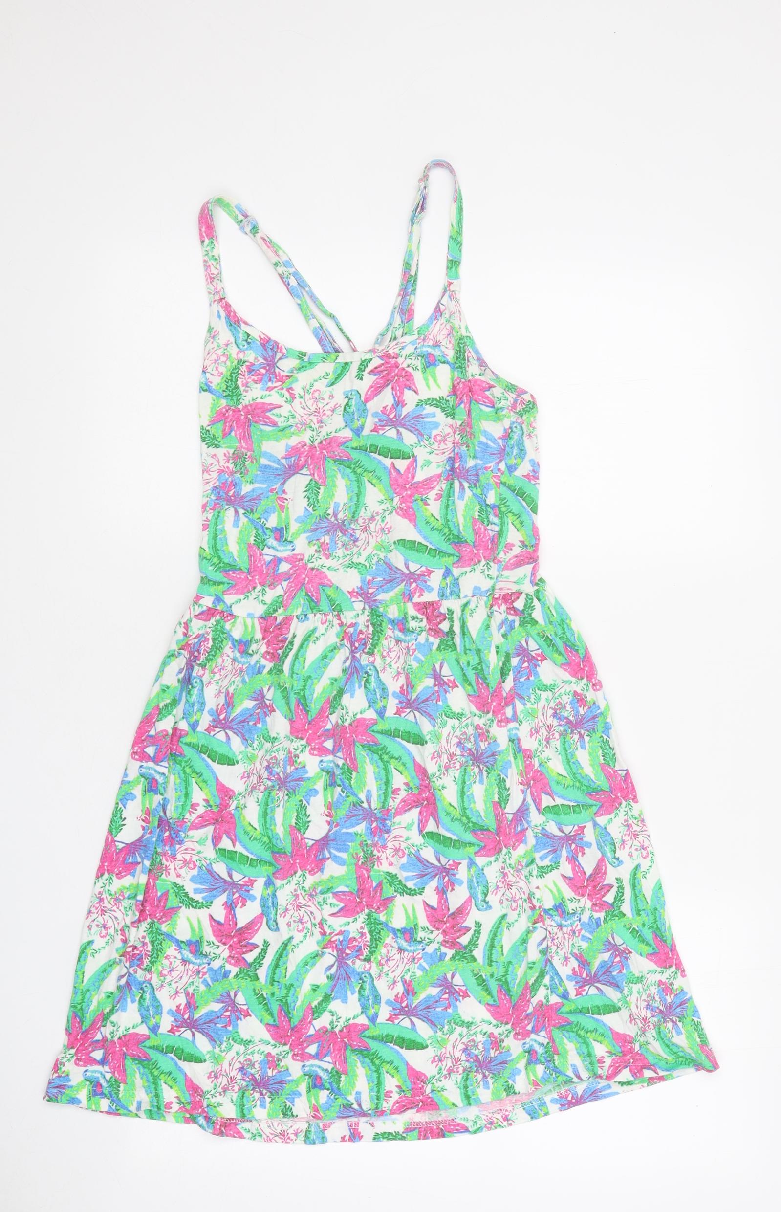 Ocean Club Womens Multicoloured Floral 100% Cotton Skater Dress Size 6 Round Neck Pullover