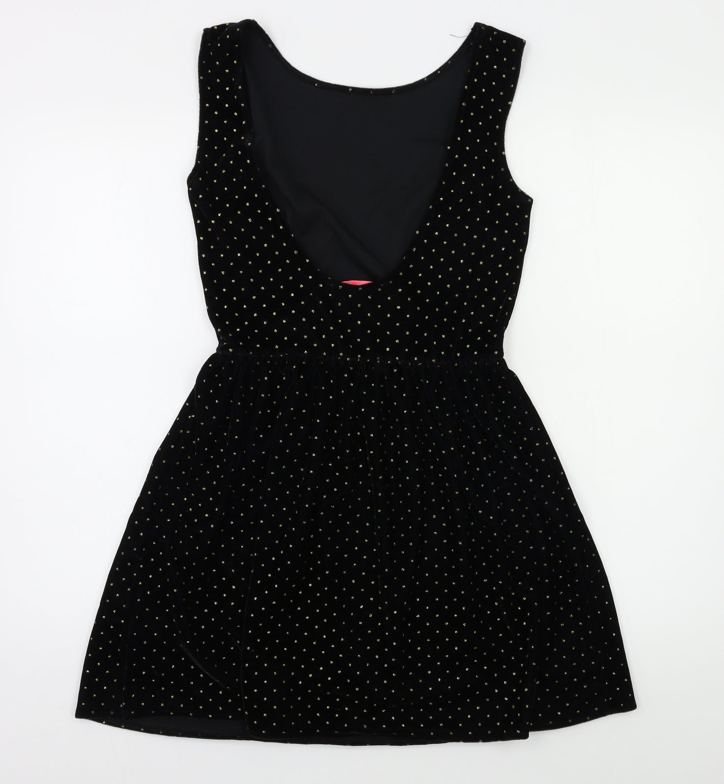 Oh My Love Womens Black Polka Dot Skater Dress Size S