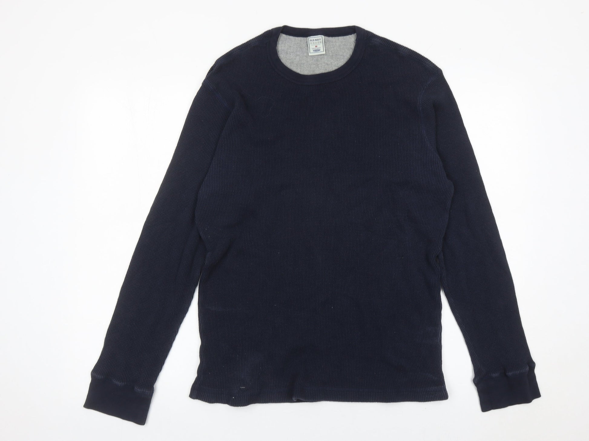 Old Navy Men’s Navy Blue Waffle-Knit Cotton Pullover Jumper M