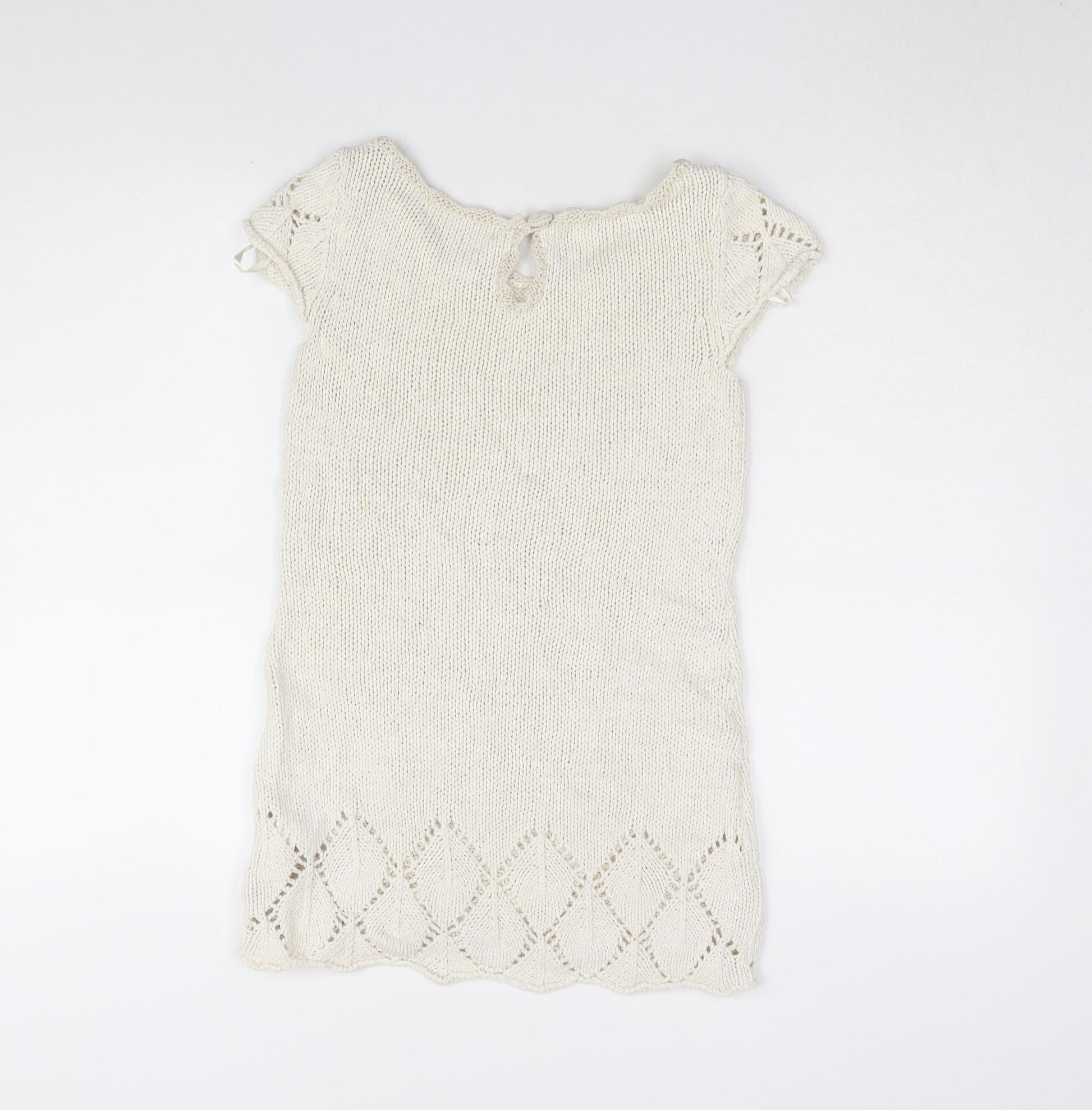Old Navy Women Ivory Basic Knit T-Shirt, Size M