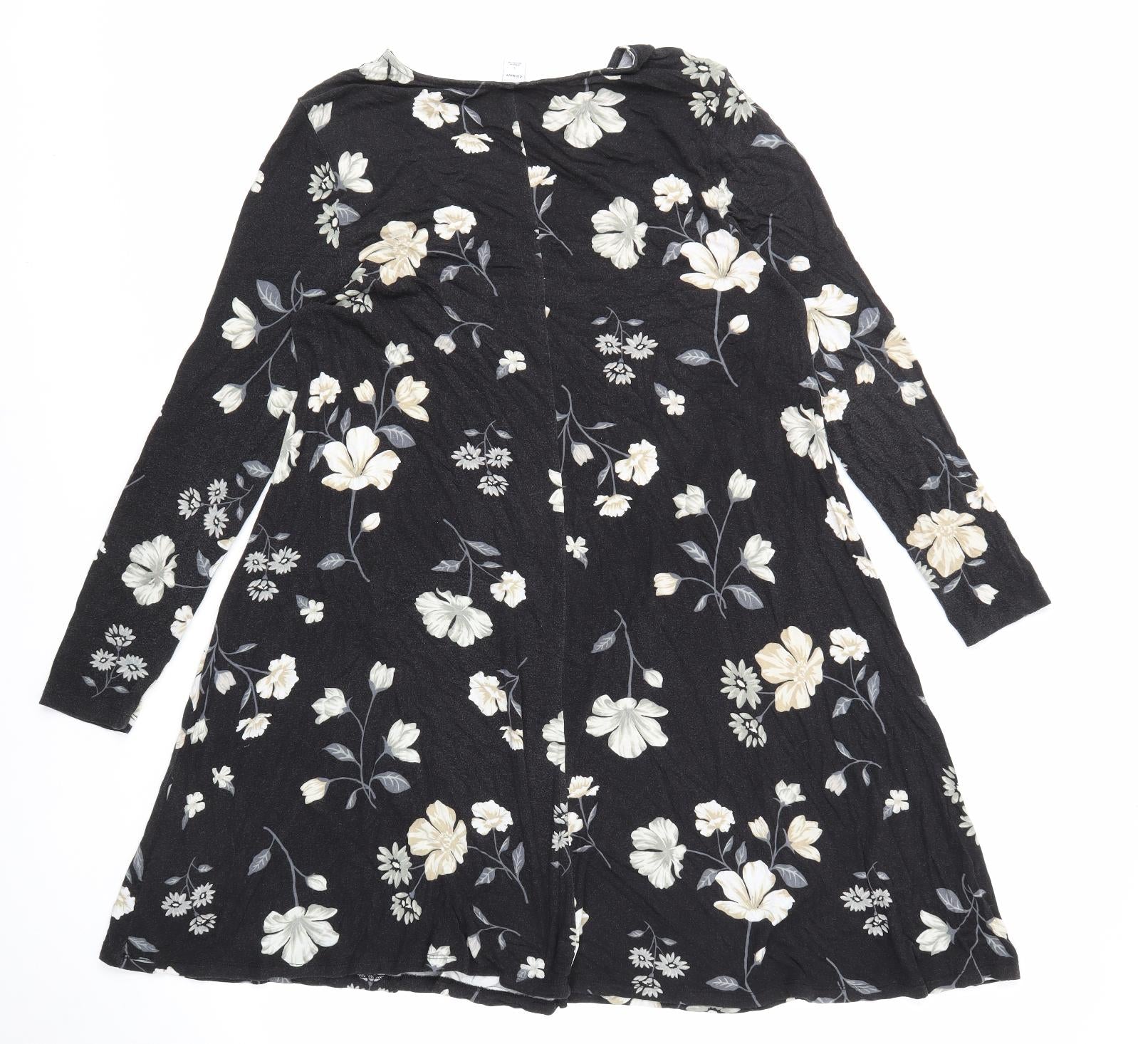 Old Navy Womens Black Floral Viscose Skater Dress Size L Round Neck Pullover