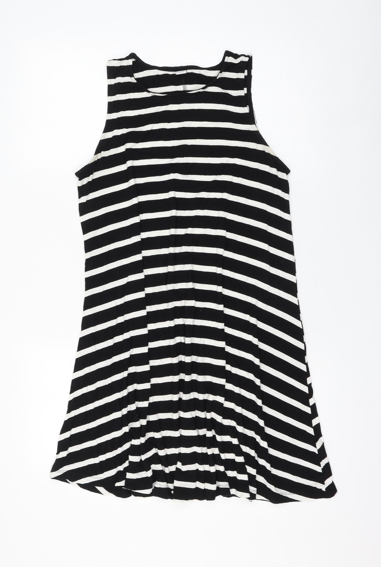 Old Navy Womens Black Striped Viscose Basic Blouse Size M Round Neck