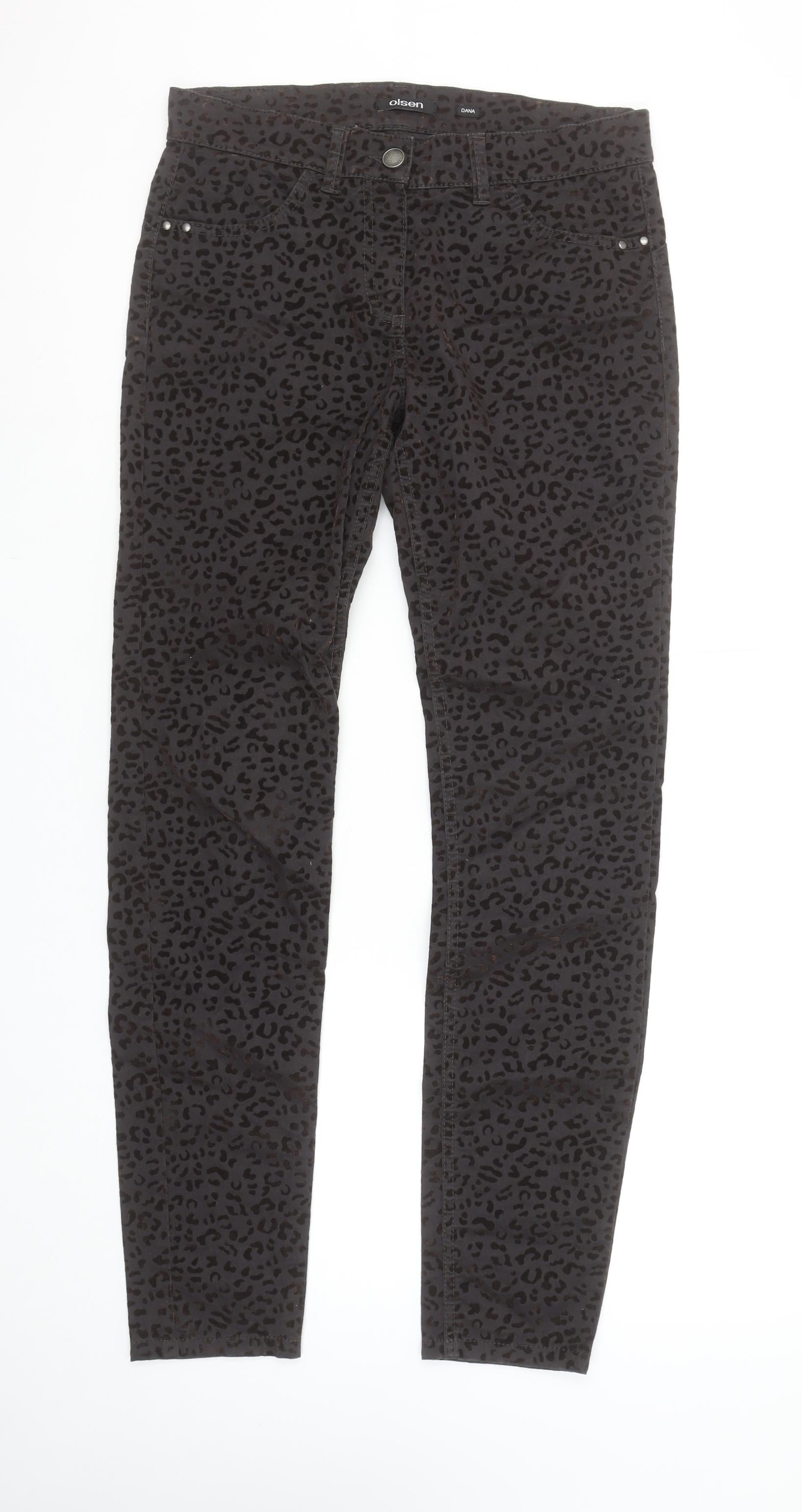 Olsen Women Brown Animal Print Skinny Jeans Size 10 Slim Fit