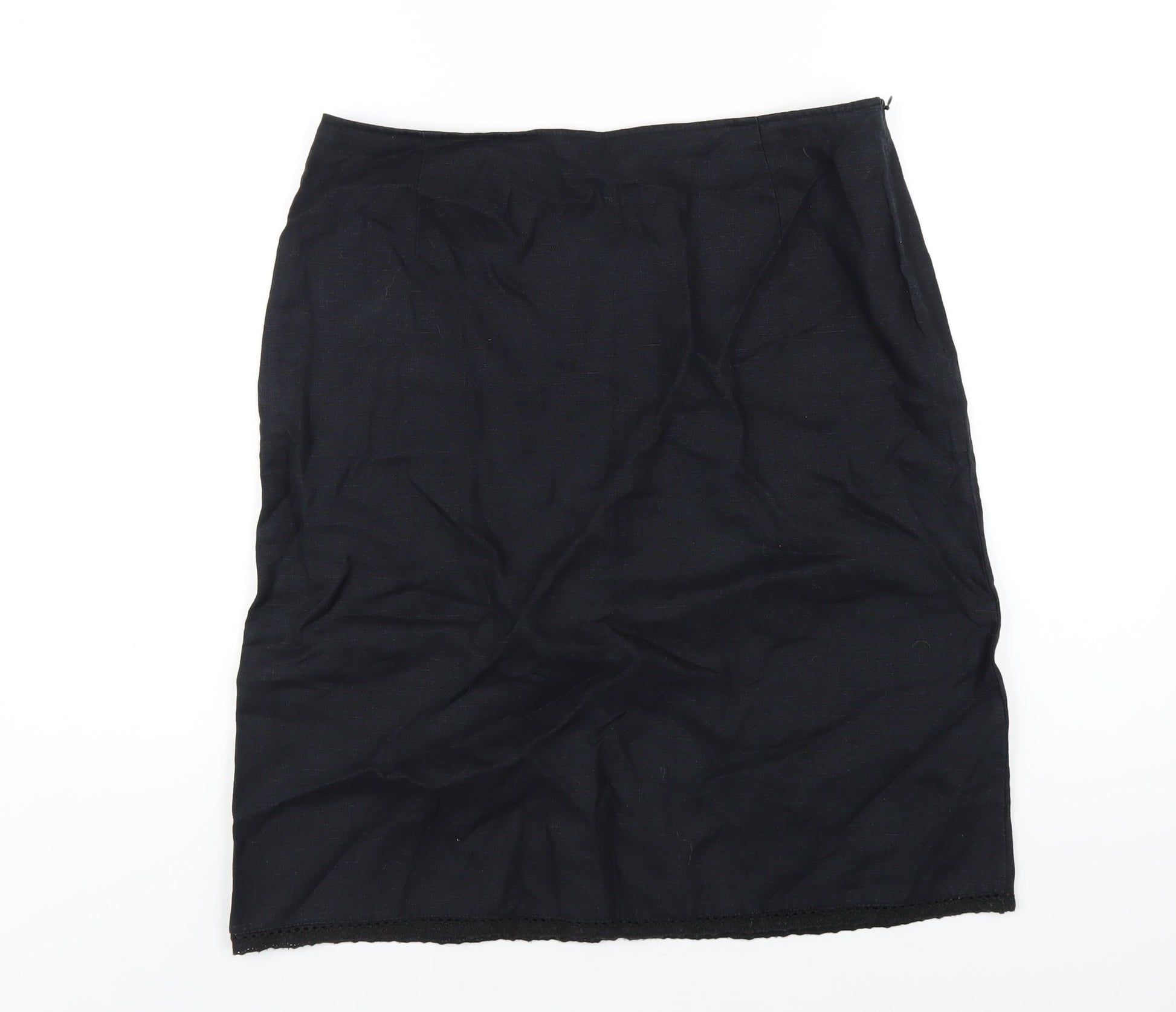 Olsen Womens Black Linen A-Line Skirt Size 14 Zip