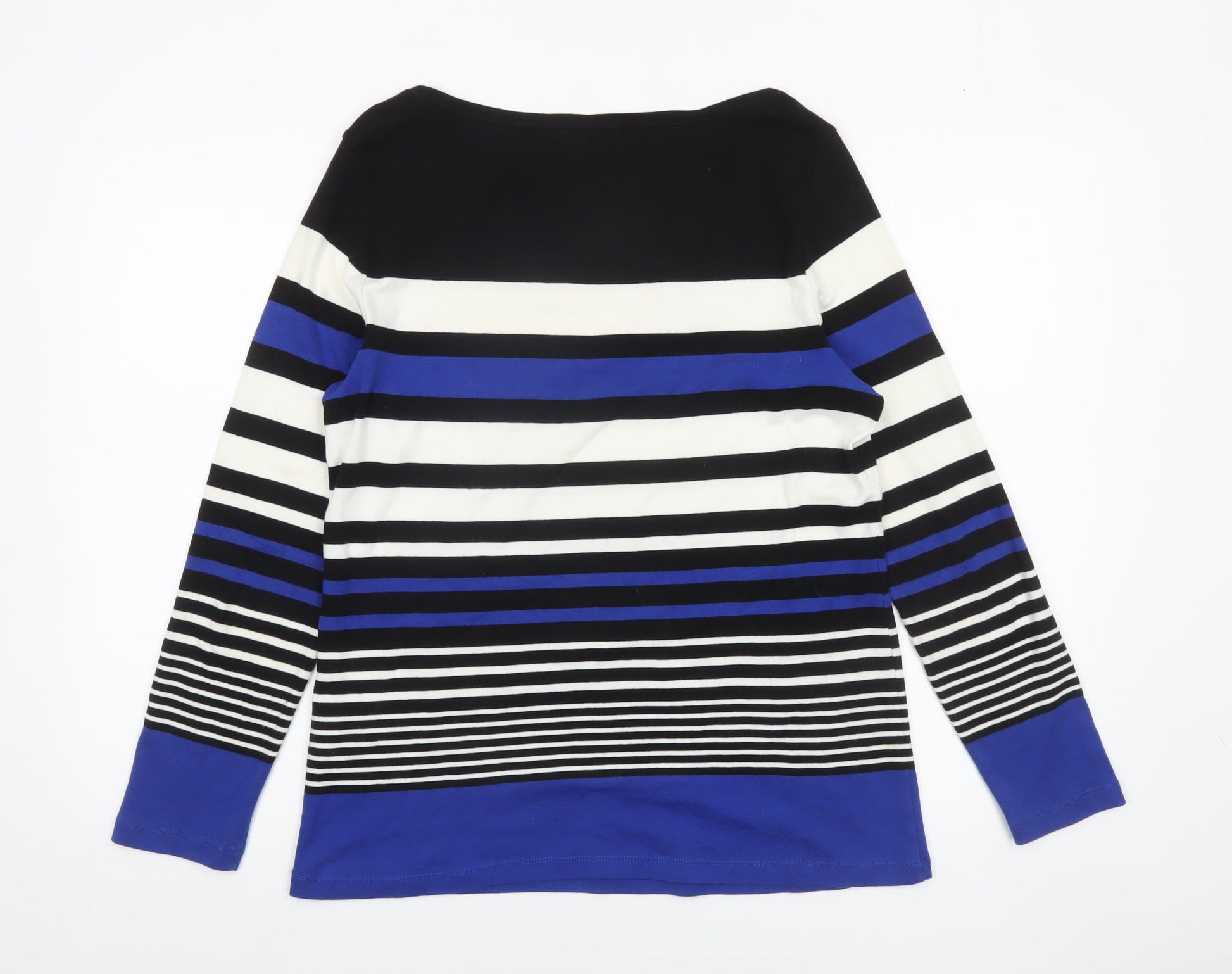 Olsen Women's Blue Black White Striped Long Sleeve Boat Neck Top Size 16