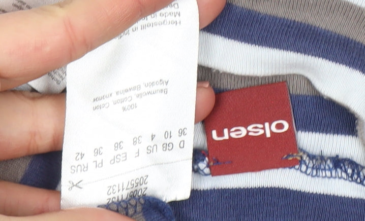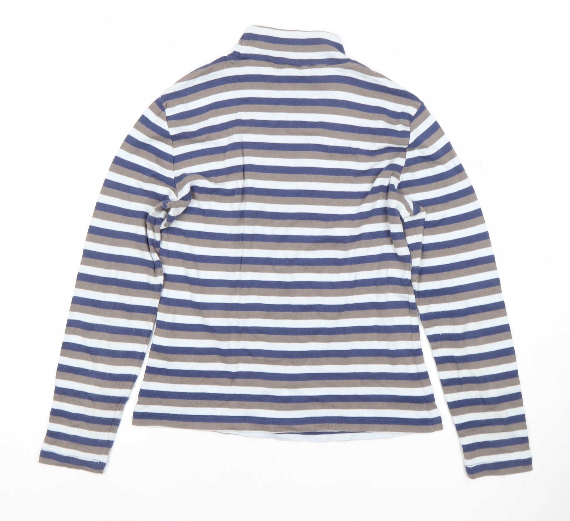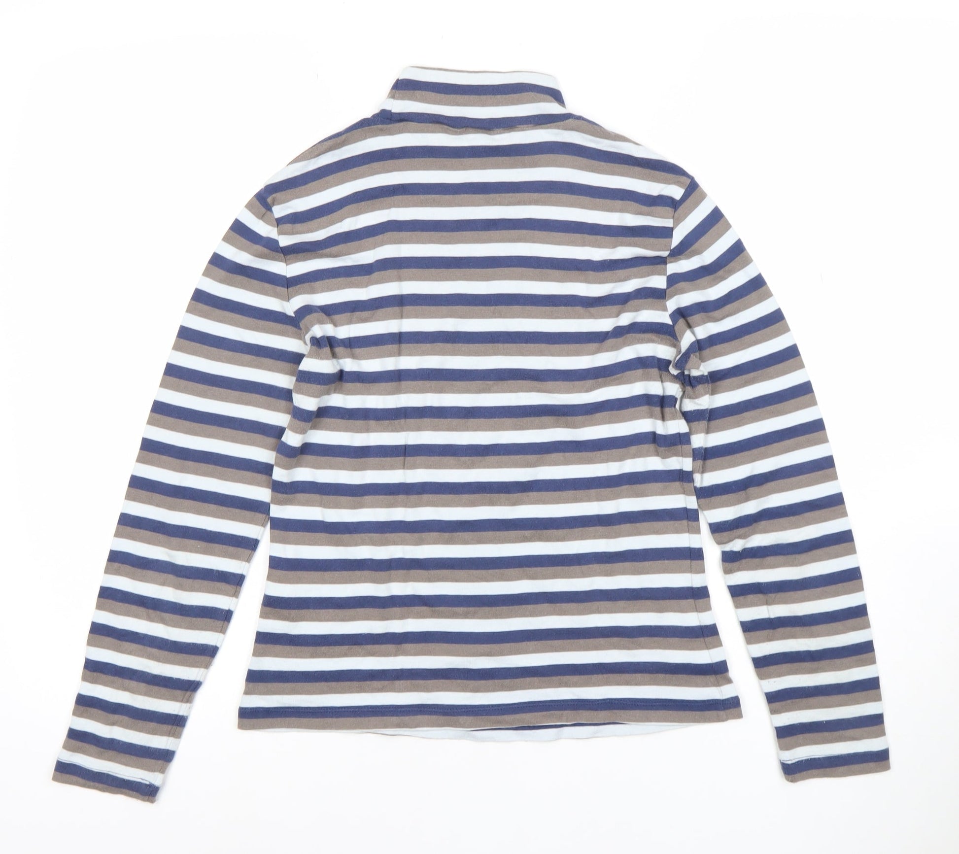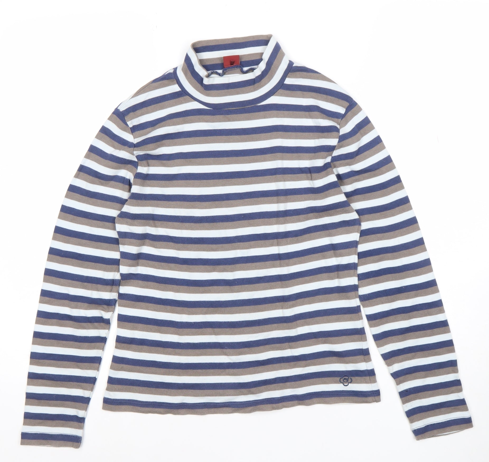 Olsen Womens Blue Striped Roll Neck Long Sleeve Cotton Top Size 12