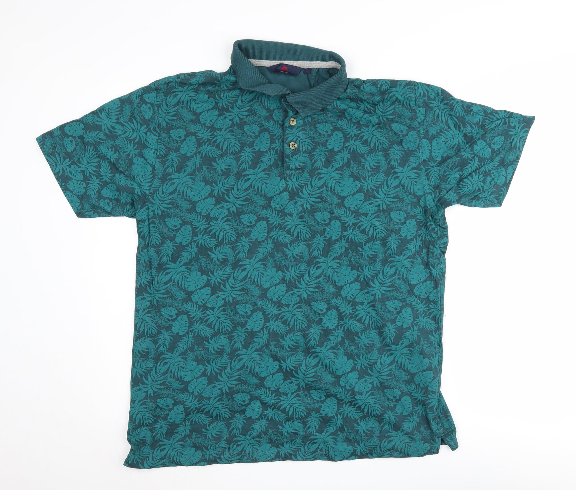One Valley Men's Green Floral Polo, Size L, Short Sleeve