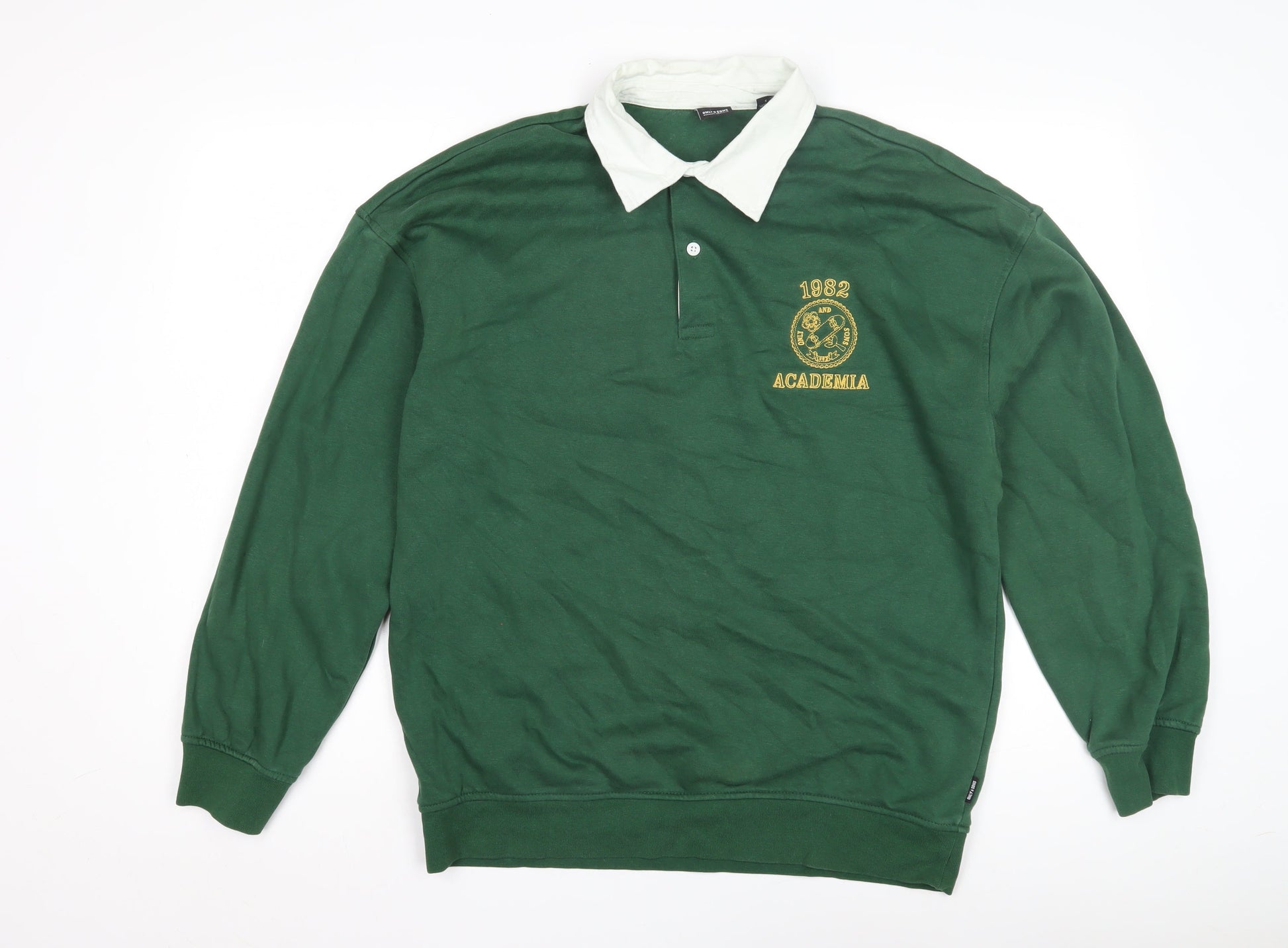 Only & Sons Green Polo Men S Embroidered Long Sleeve