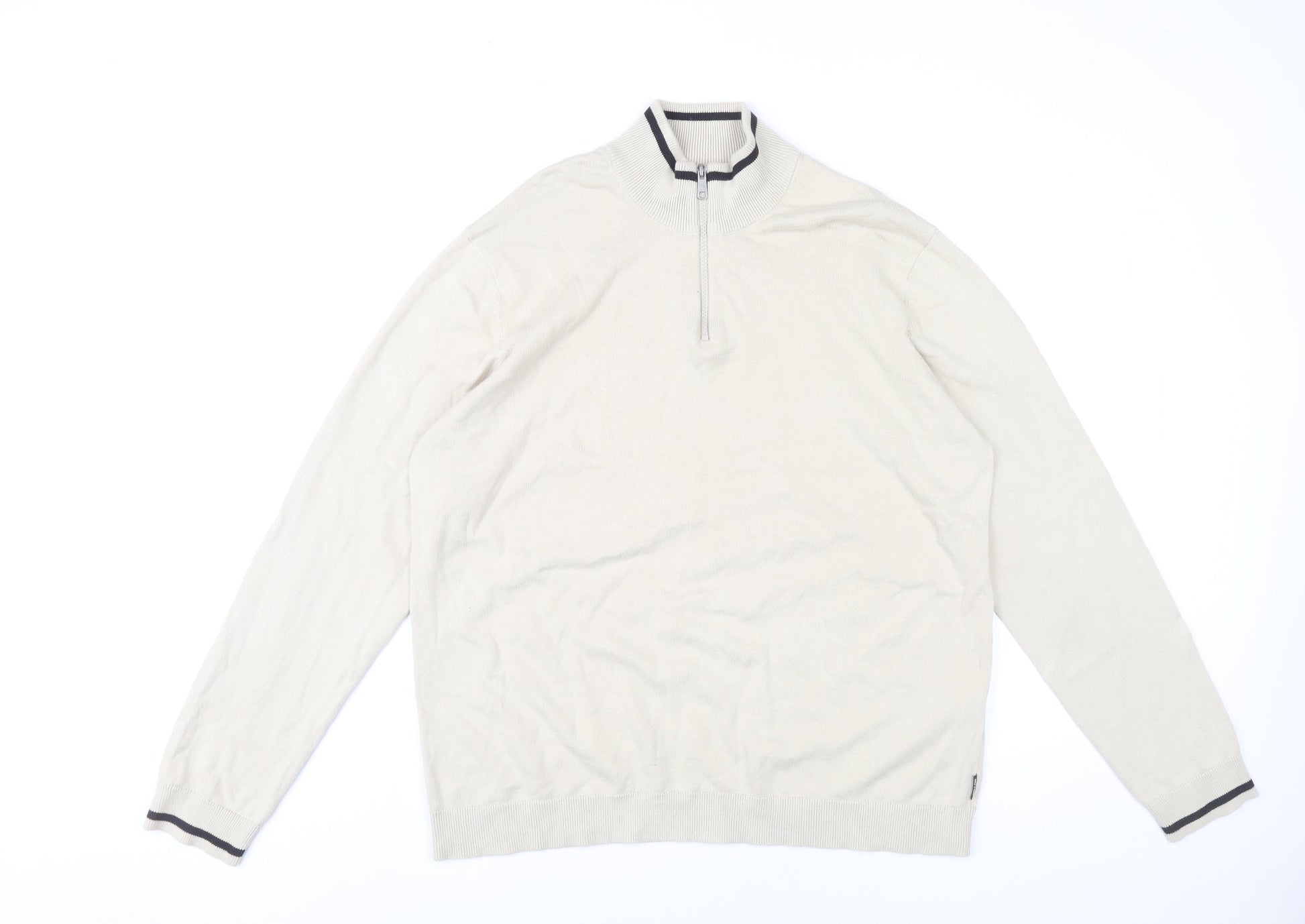 Only & Sons Men’s Beige XL Cotton 1/2 Zip Mock Neck Jumper