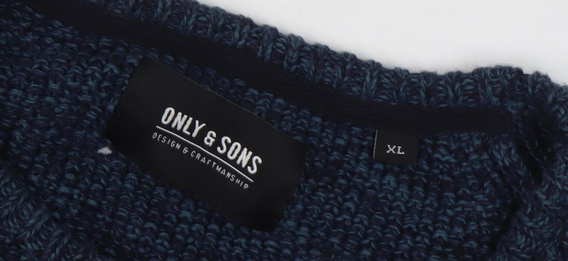 Only & Sons Men's Blue XL Cotton Pullover Jumper