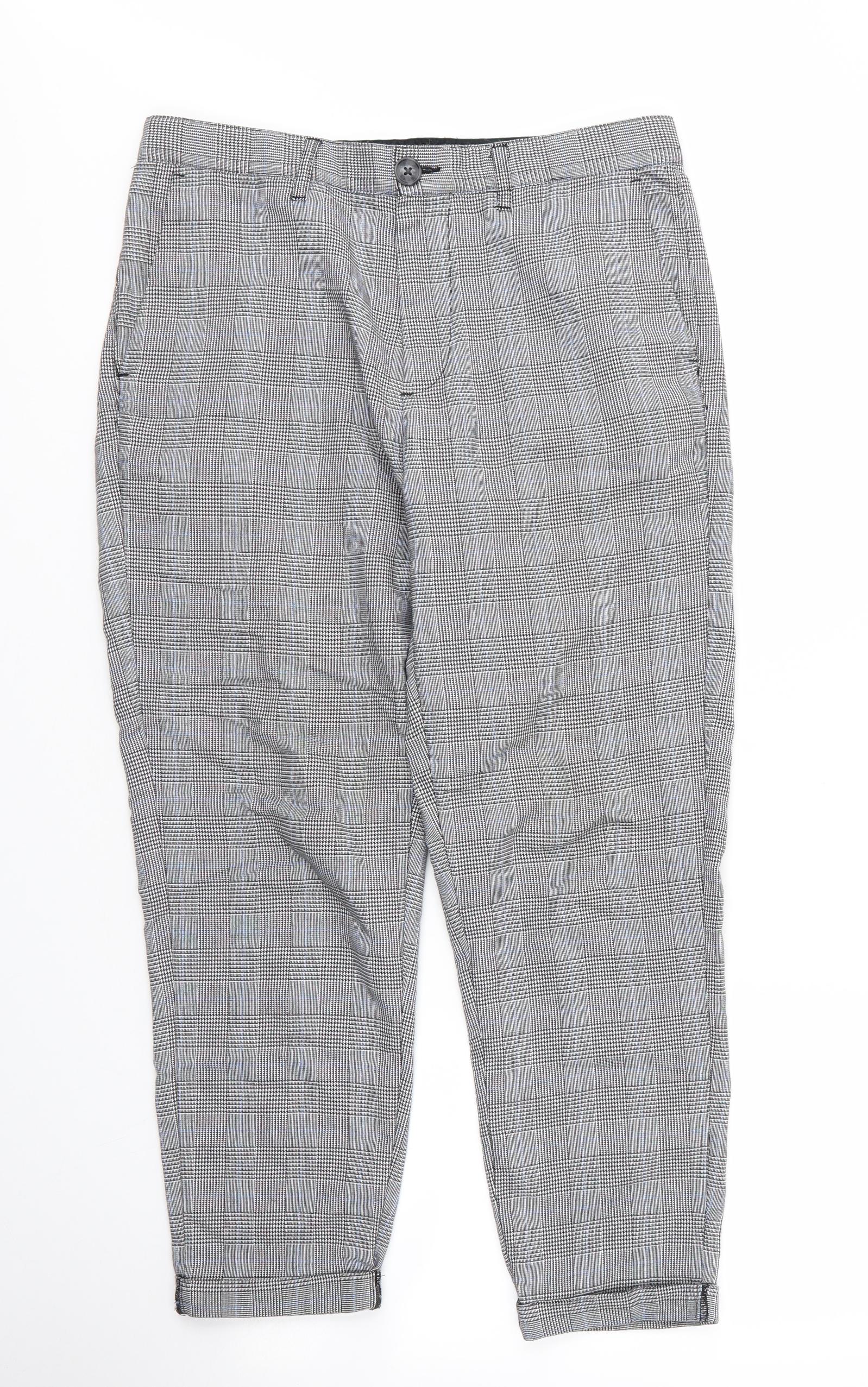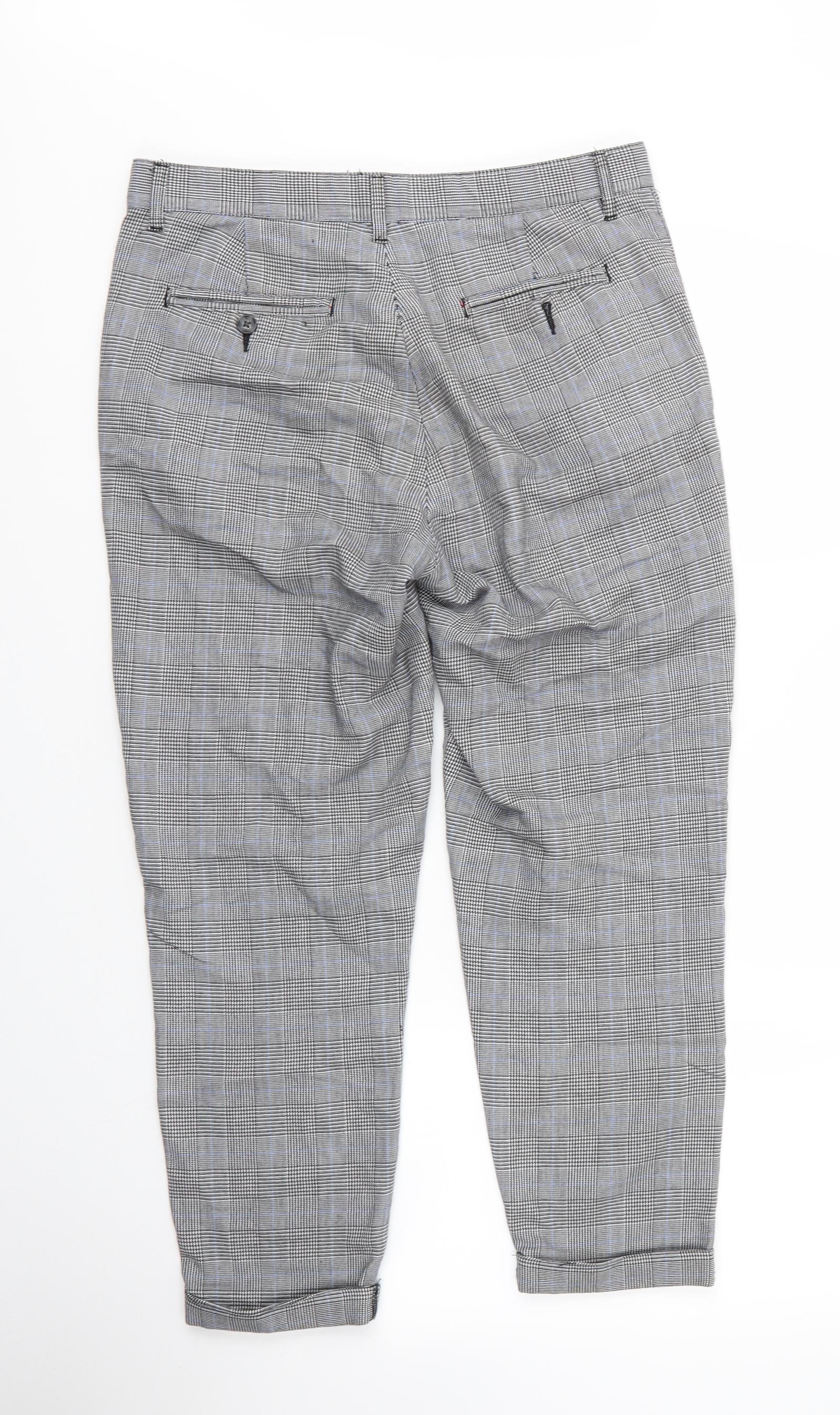 ONLY & SONS Womens Grey Plaid Viscose Capri Trousers Size 8 L25 in Regular Zip