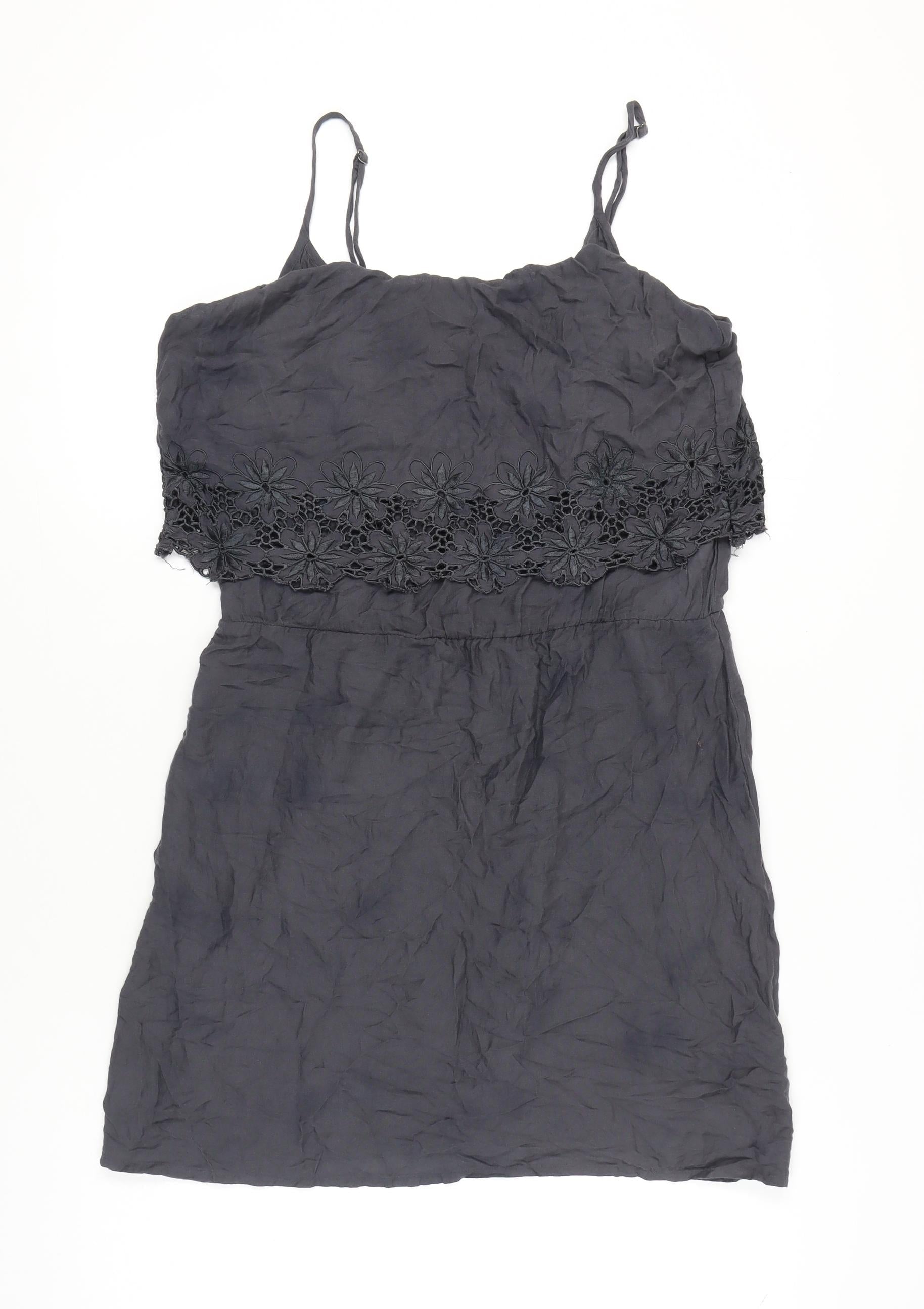 ONLY Women’s Black Size 12 Slip Dress Embroidered Floral Summer Casual