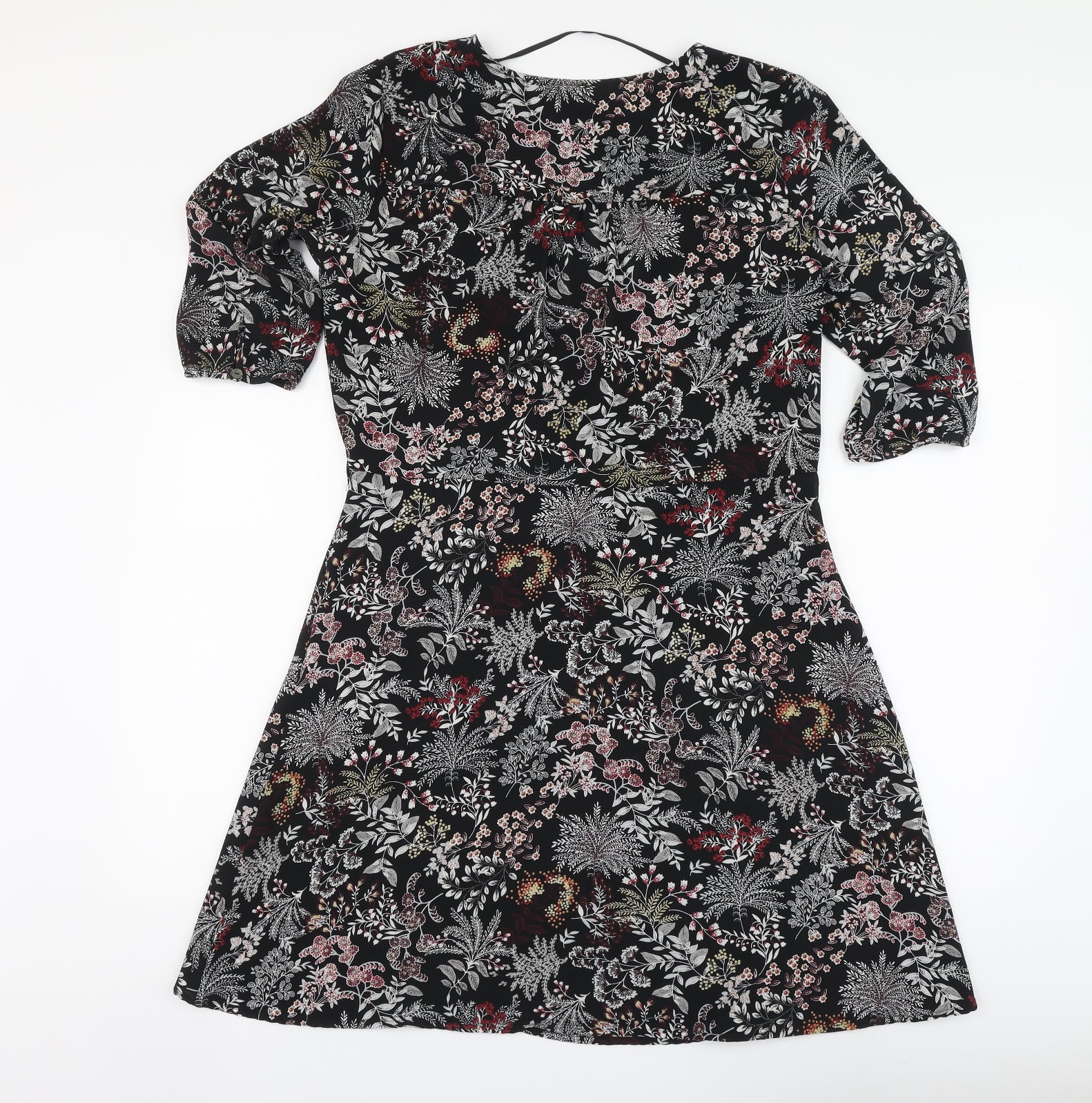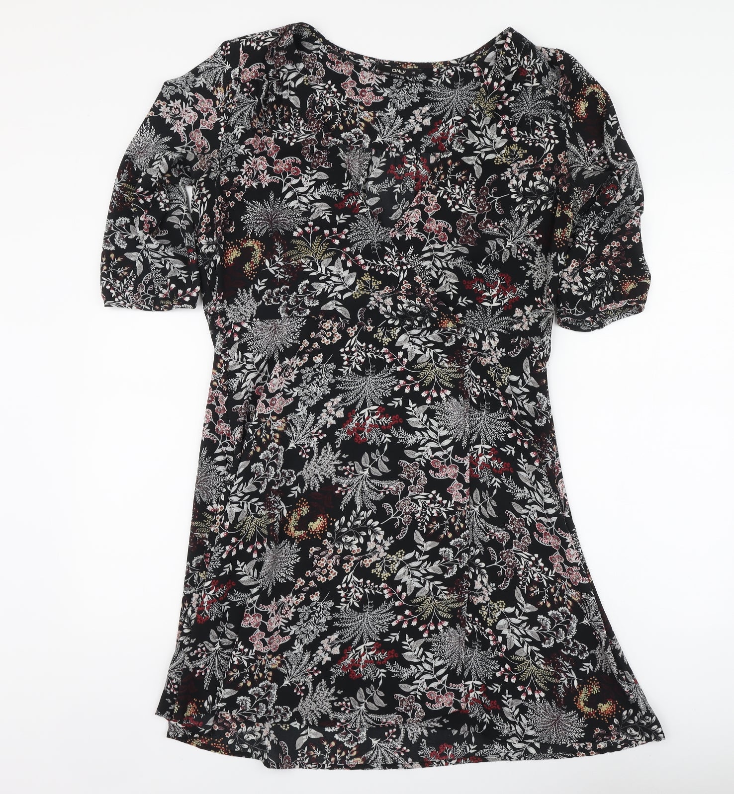 Only Womens Black Floral Polyester A-Line Size 10 V-Neck