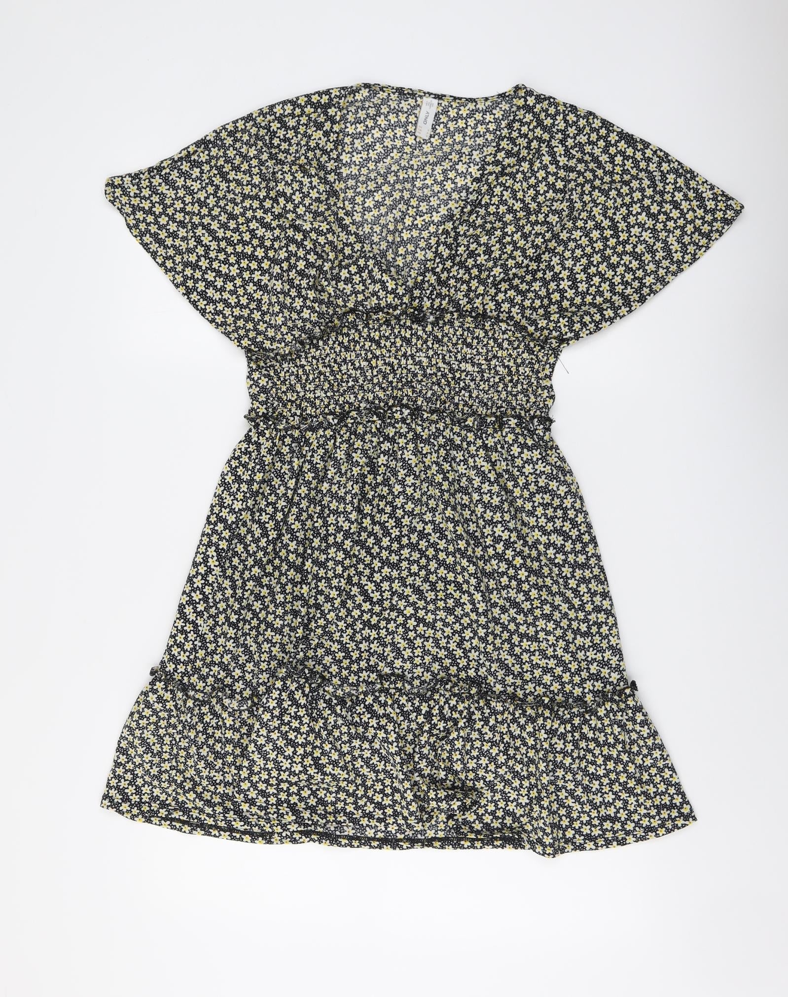 Only Womens Black Floral Polyester Fit & Flare Size S V-Neck Pullover