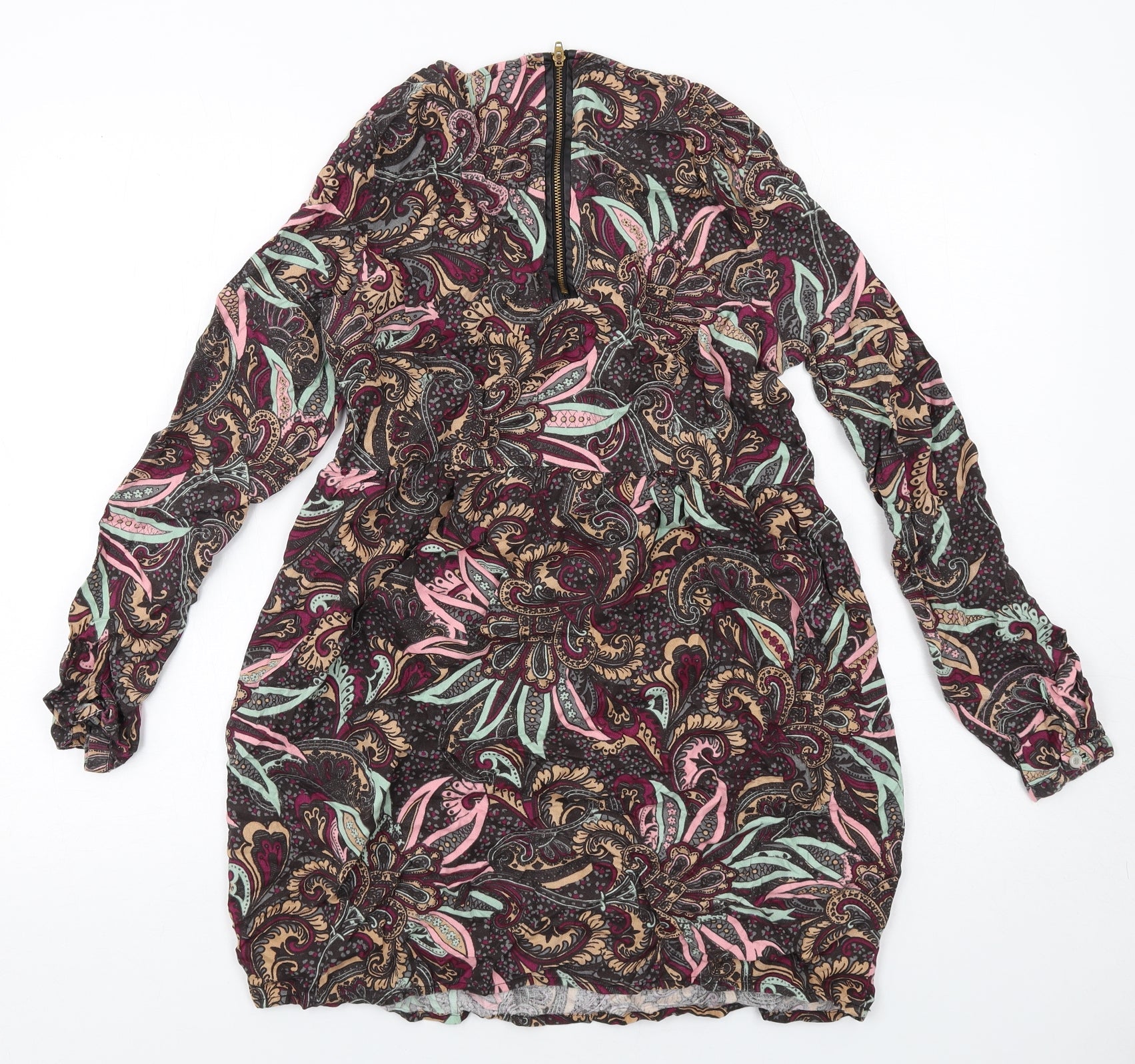 Only Womens Multicoloured Geometric Viscose A-Line Size 6 Round Neck Zip