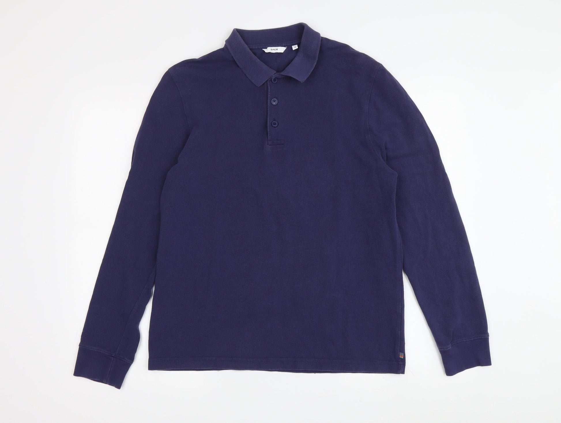 OPEN Men's Blue Long Sleeve Polo Shirt Medium