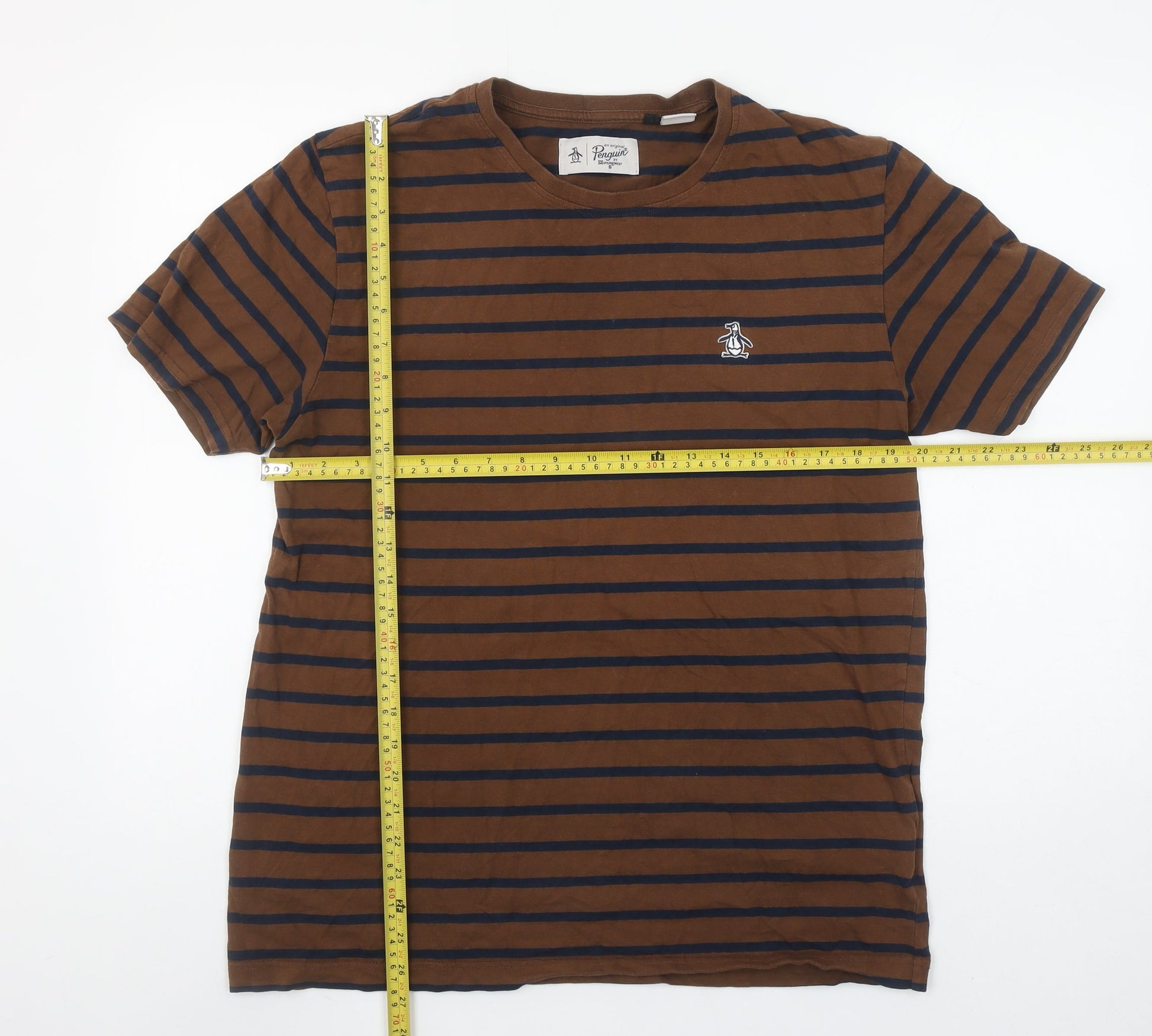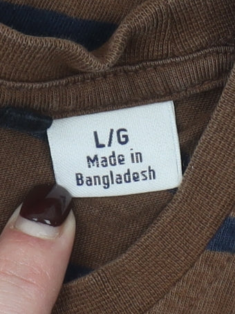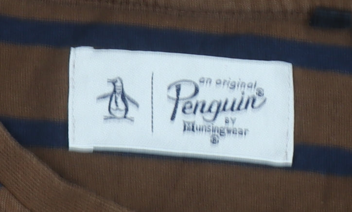 Original Penguin Men's Brown Striped Cotton Crew Neck T-Shirt Size L