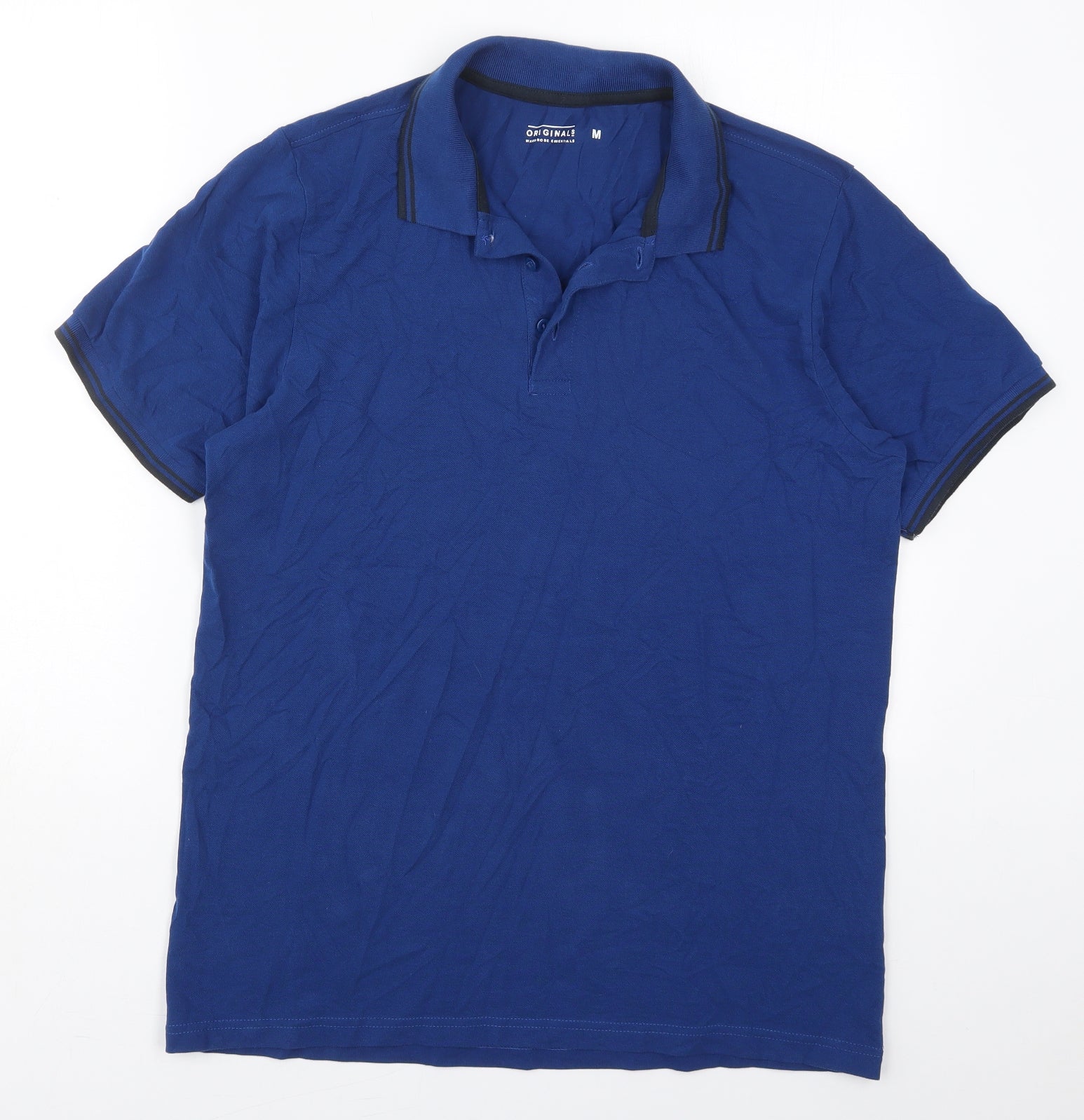 Originals Wardrobe Essentials Mens Blue Cotton Polo Size M Collared Pullover