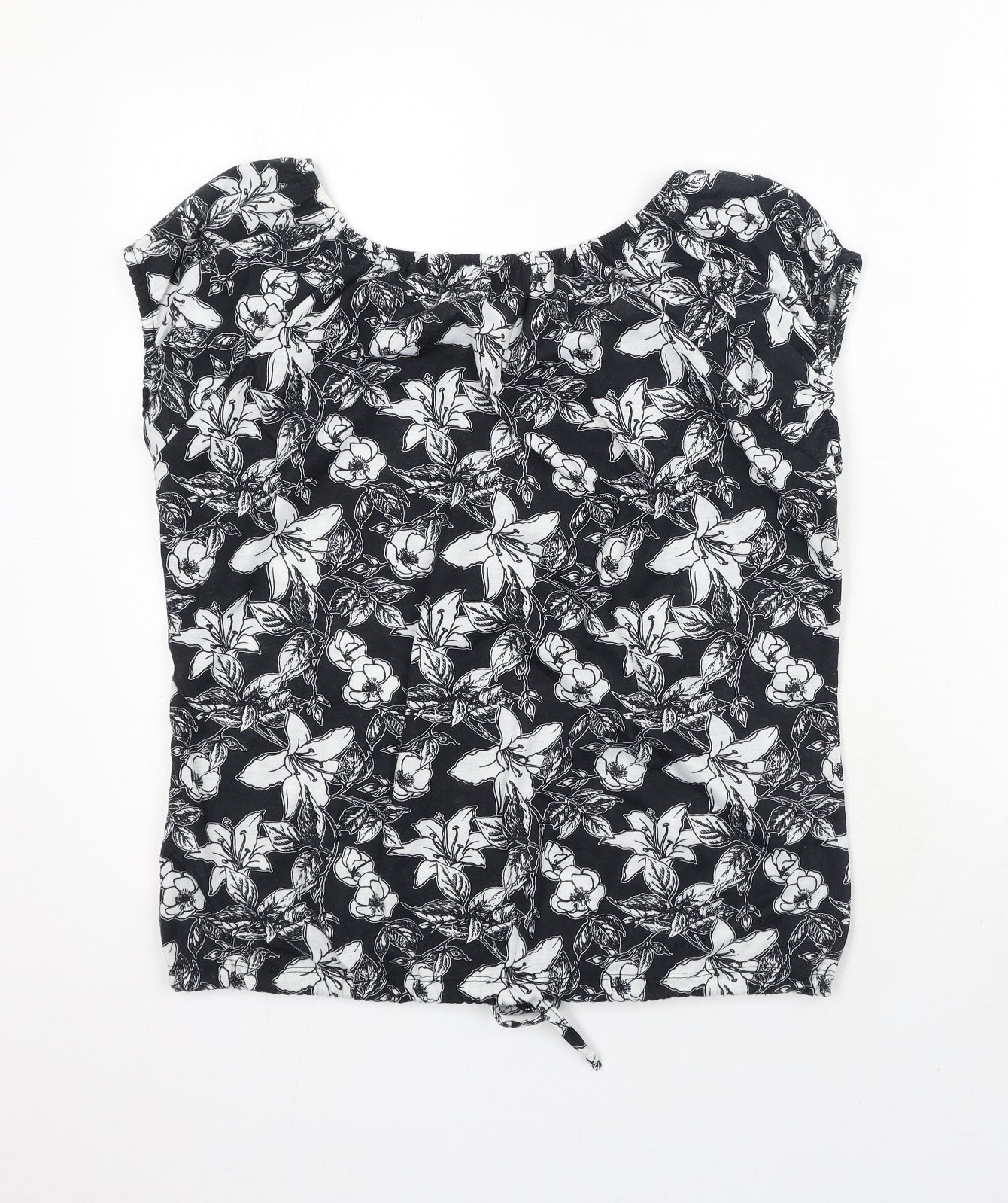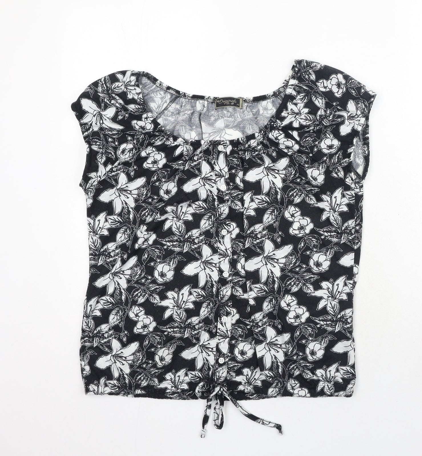 Originals Womens Black Floral Polyester Basic Blouse Size 14 Round Neck
