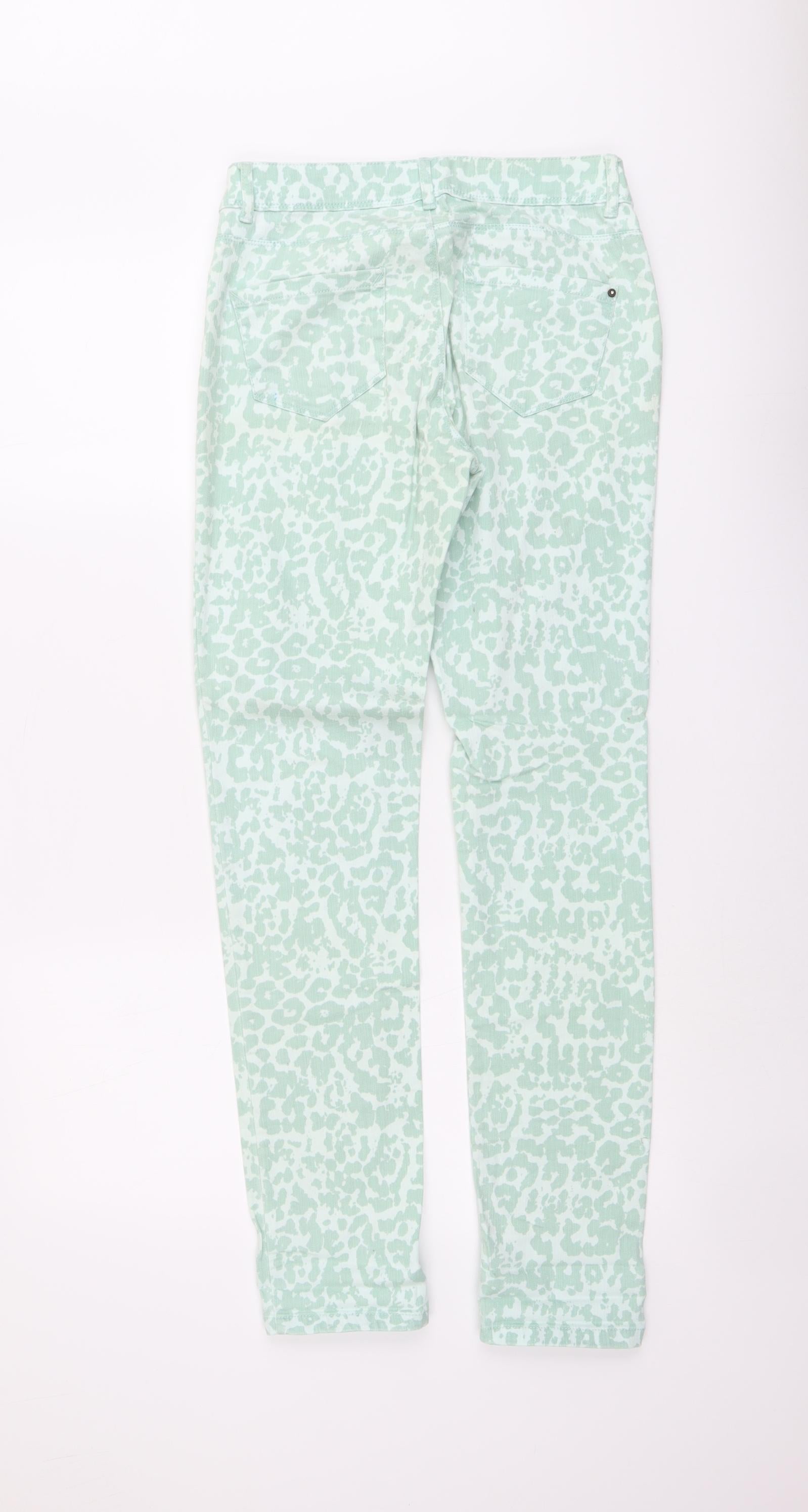 ORSAY Womens Green Animal Print Cotton Straight Jeans Size 6 L30 in Regular Button - Leopard Pattern